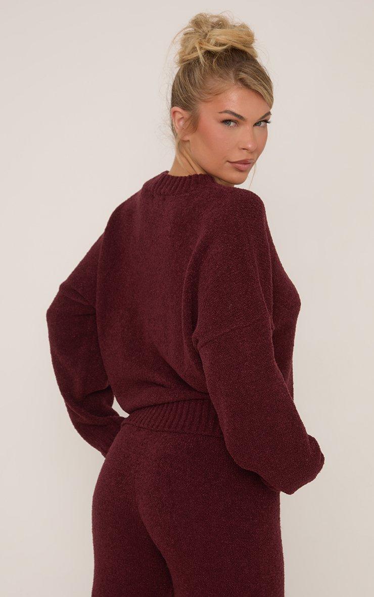 Long Sleeve Oversized Jumper In Burgundy Boucle Knit