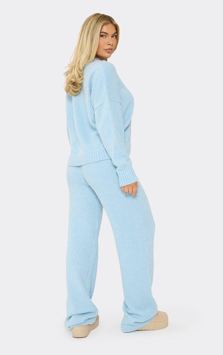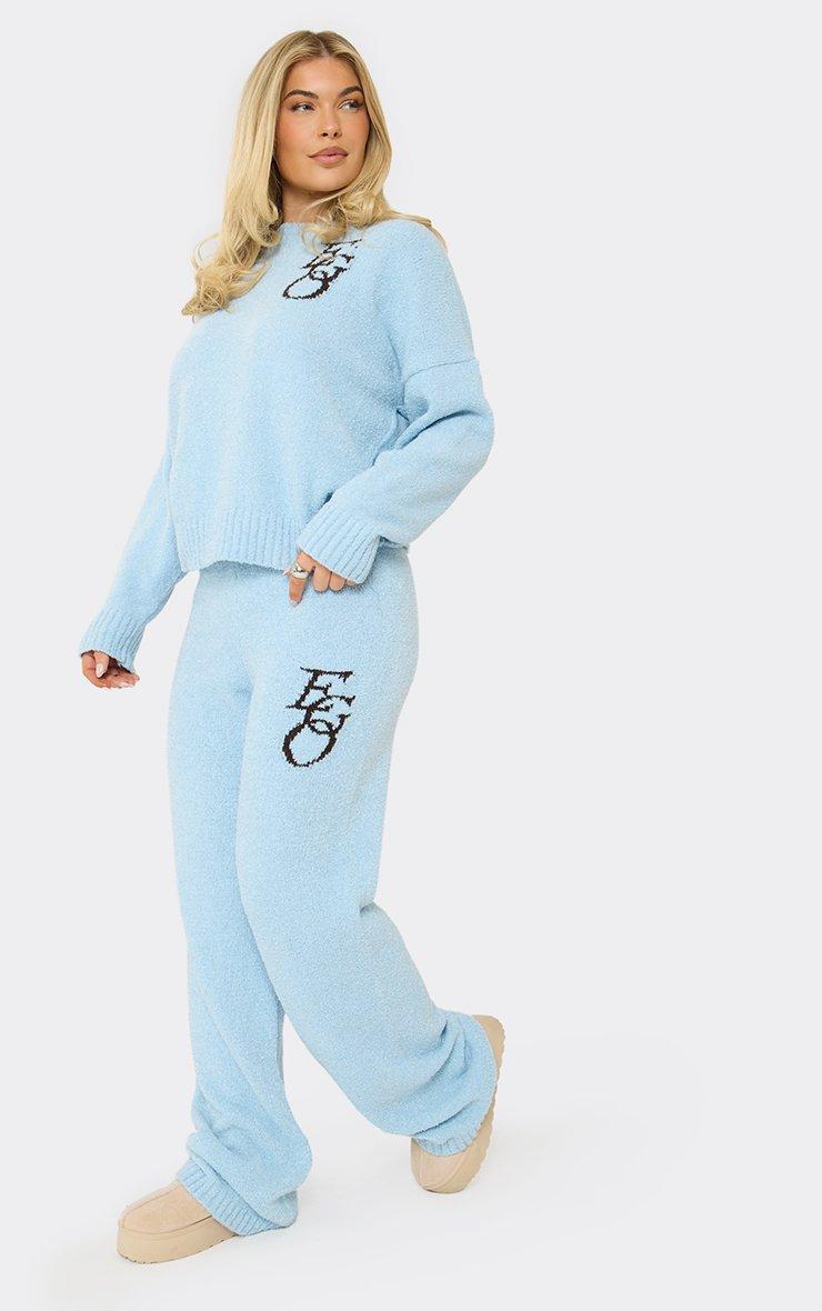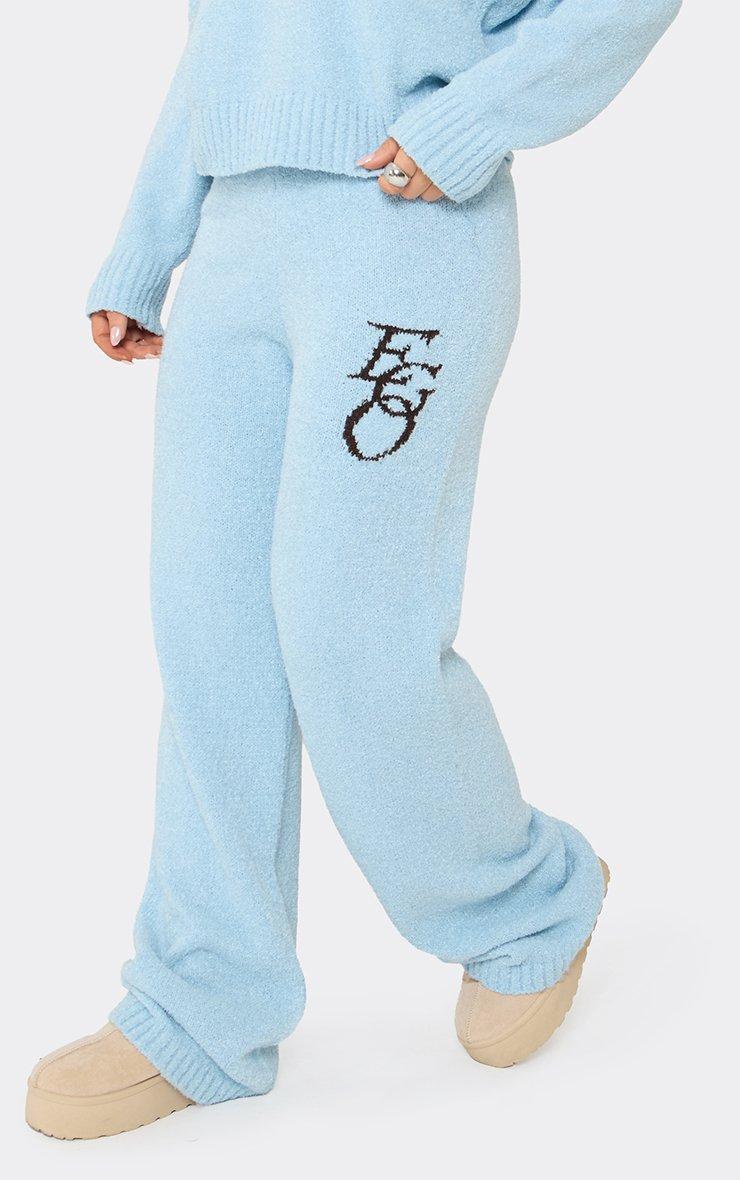 Long Sleeve Crew Neck Ego Graphic Oversized Jumper In Baby Blue Knit
