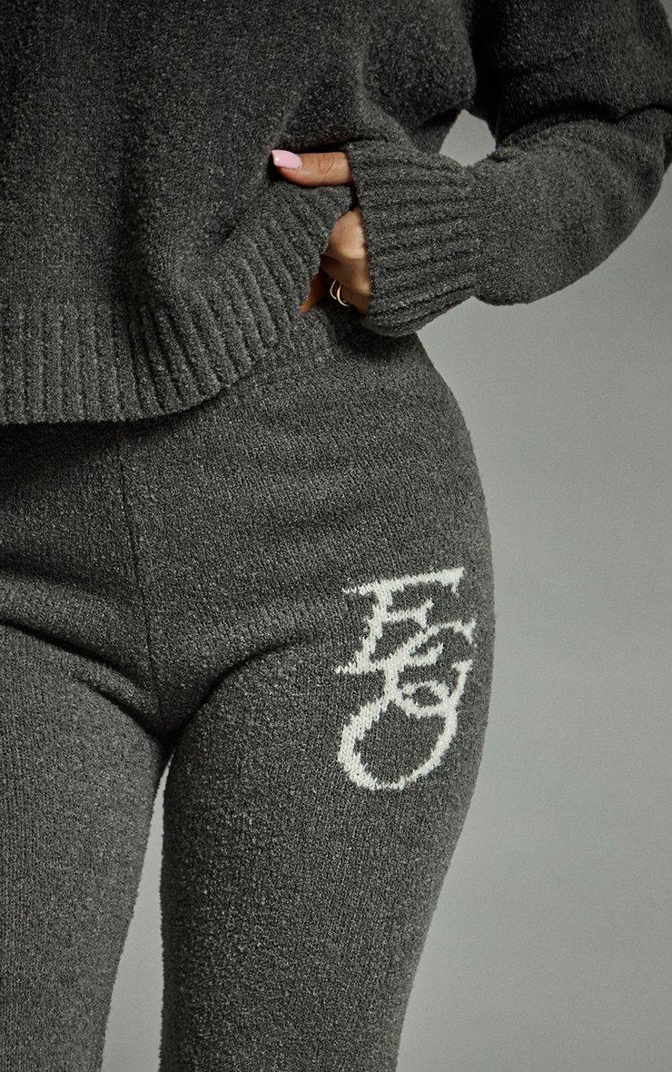 High Waist Embroidered Ego Logo Wide Leg Trousers In Grey Knit
