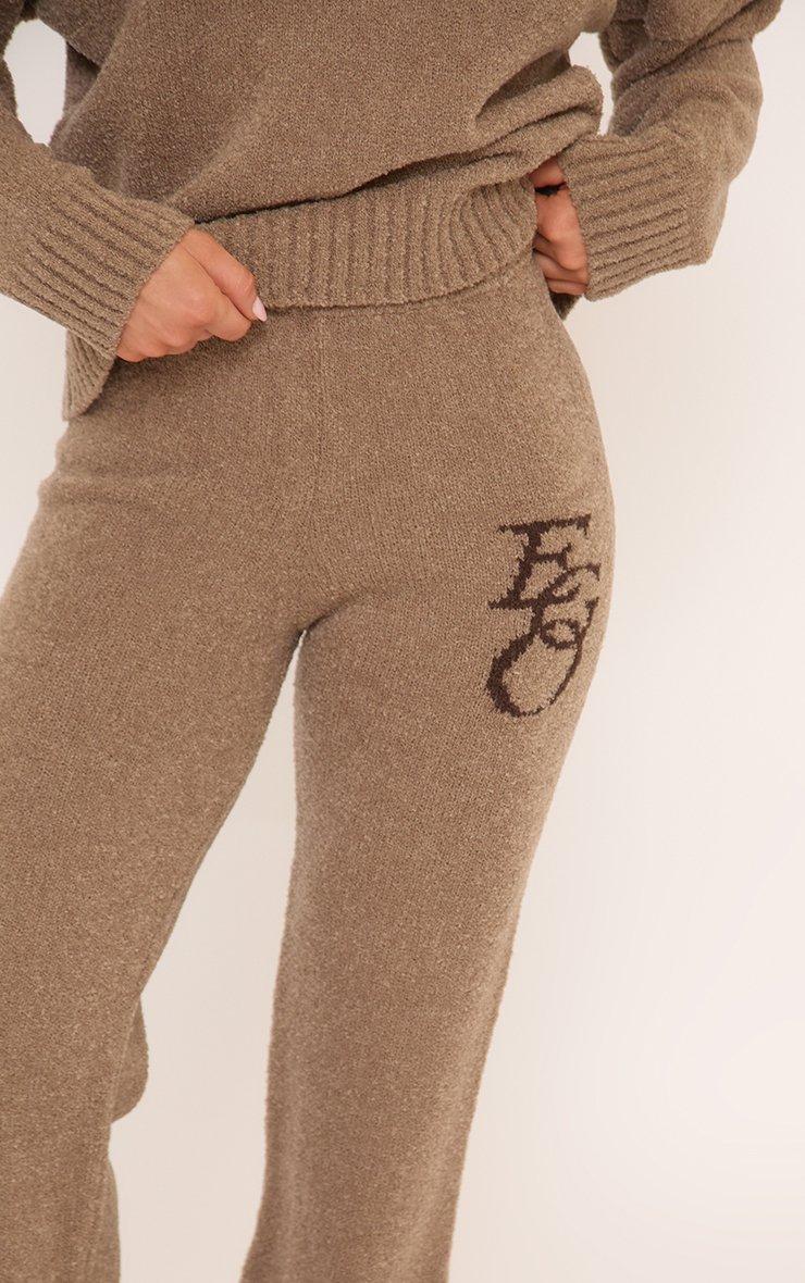mid waist ego graphic straight leg trousers in mocha knit