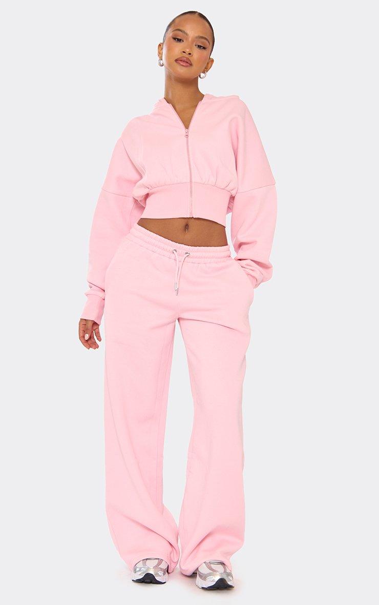 Low Rise Wide Leg Detail Joggers In Baby Pink