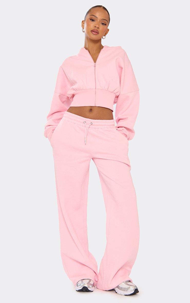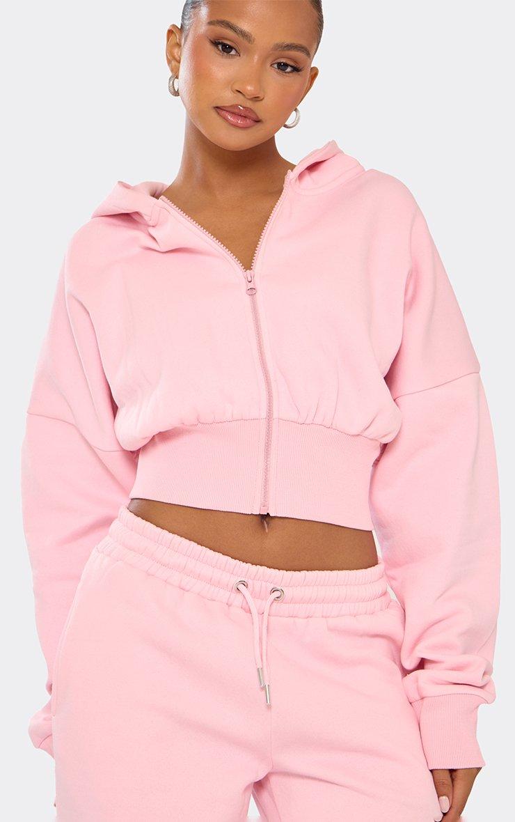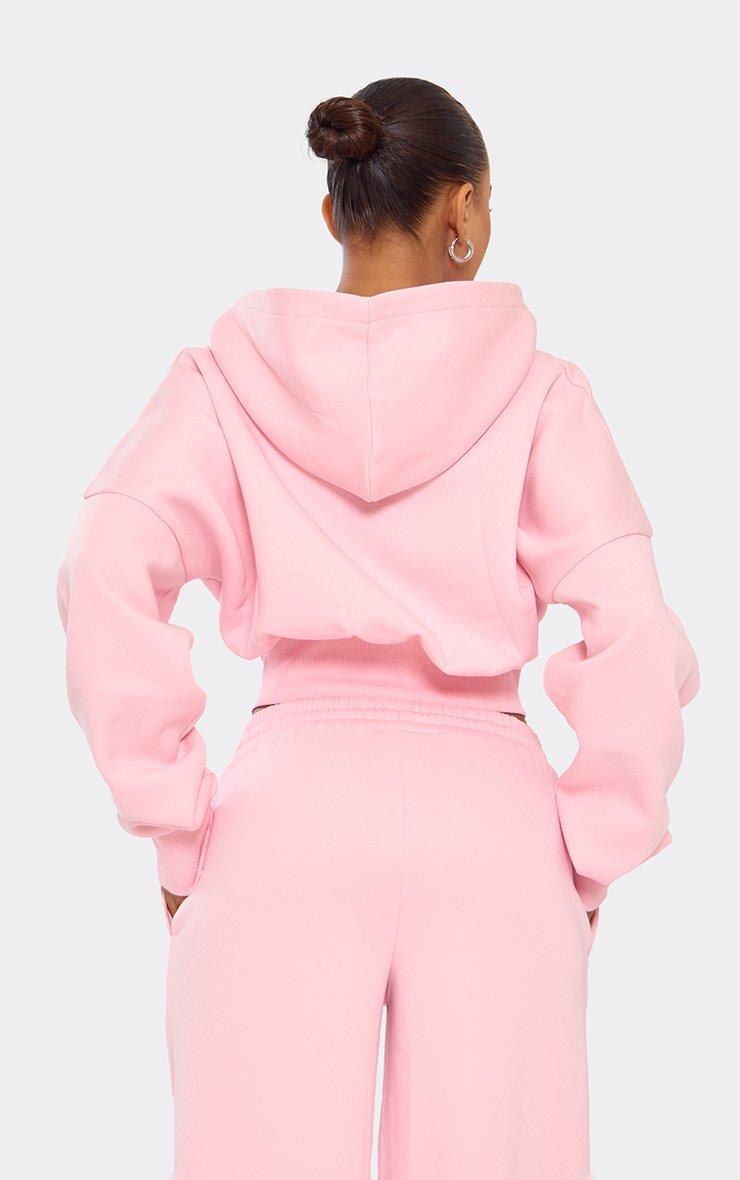 Long Balloon Sleeve Zip Up Front Cropped Hoodie In Pink