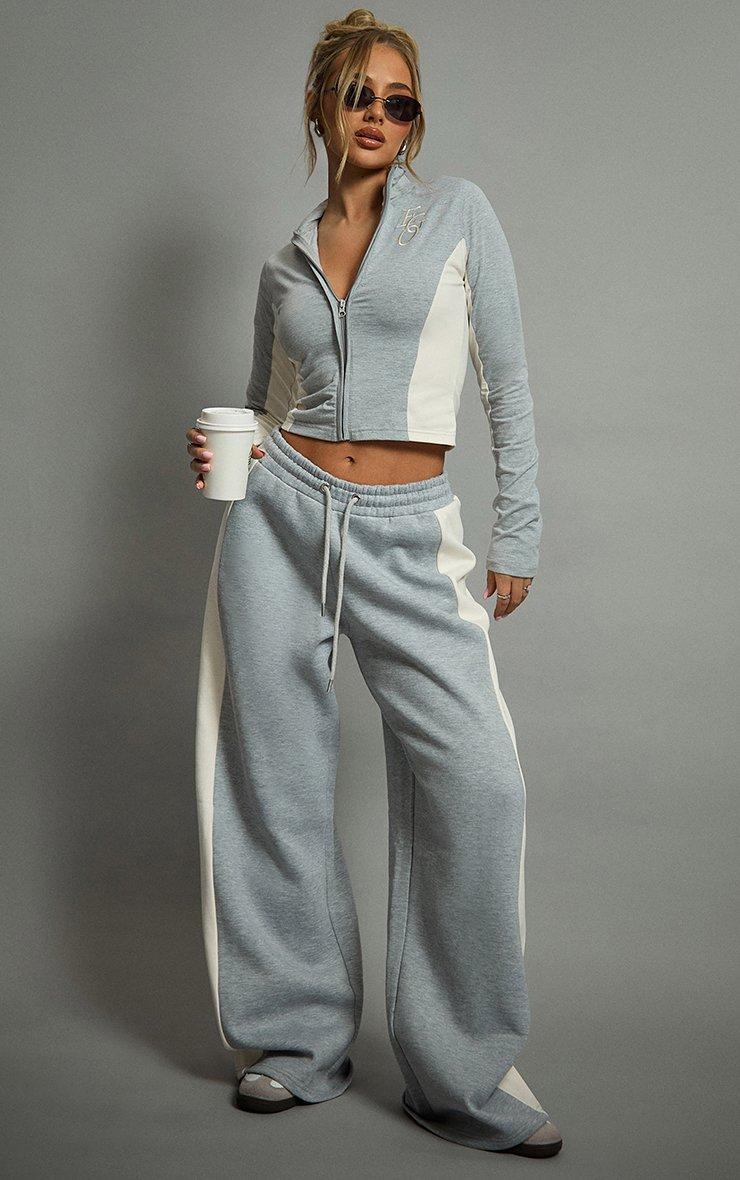 Long Sleeve Double Zip Fitted Top In Light Grey Marl