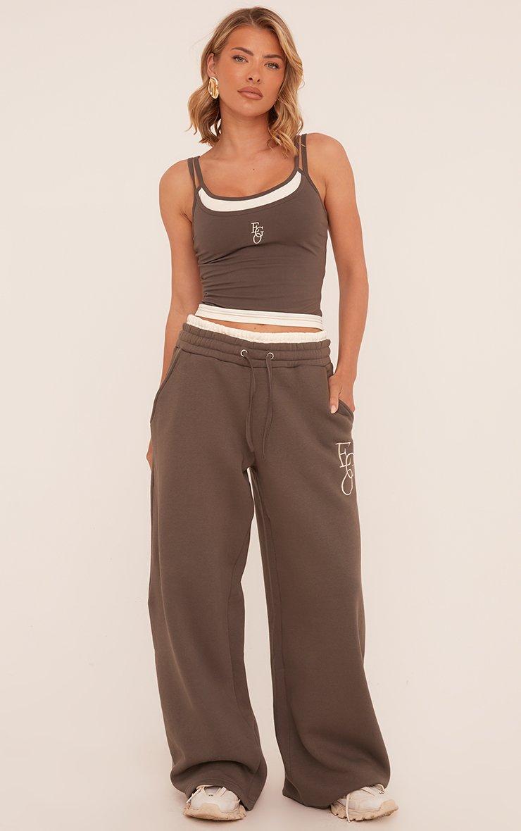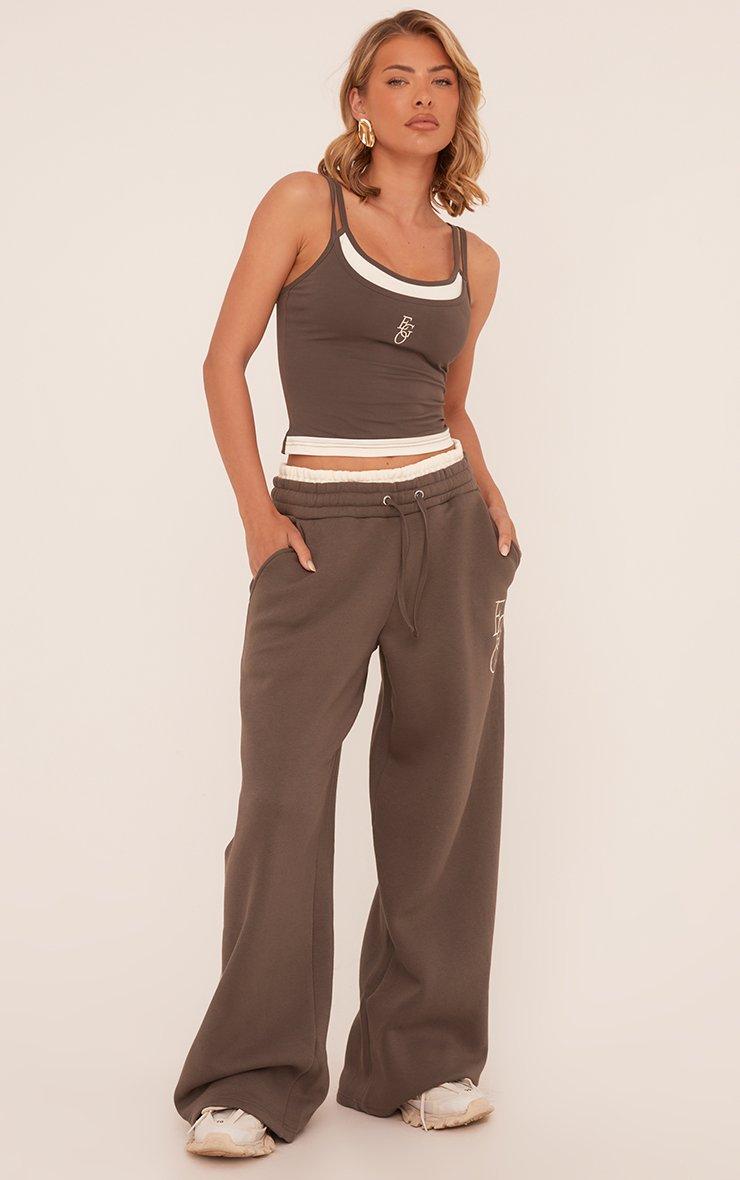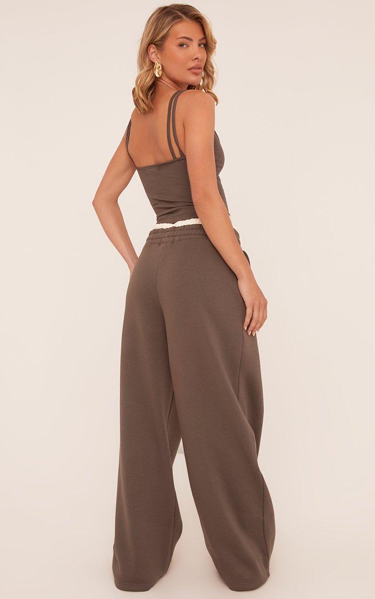 Tie Contrast Waistband Wide Leg Joggers In Grey