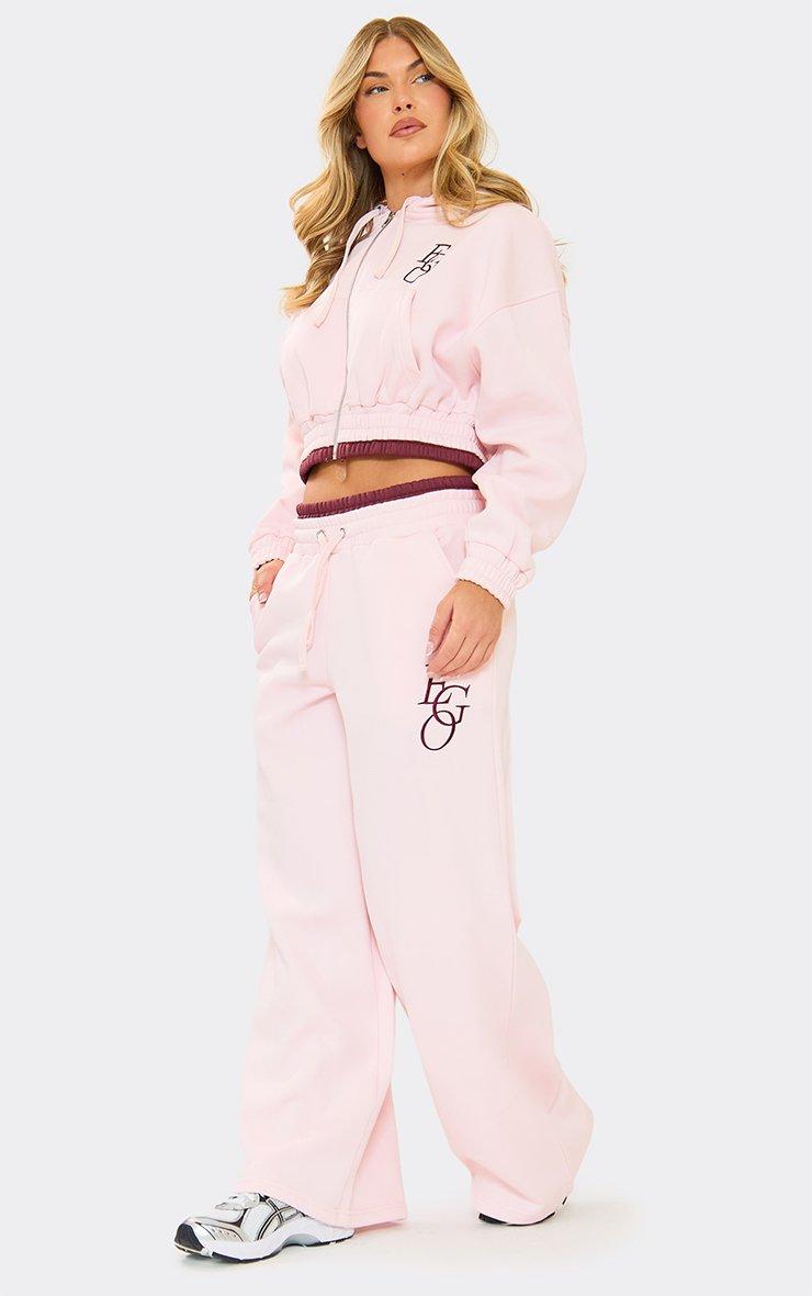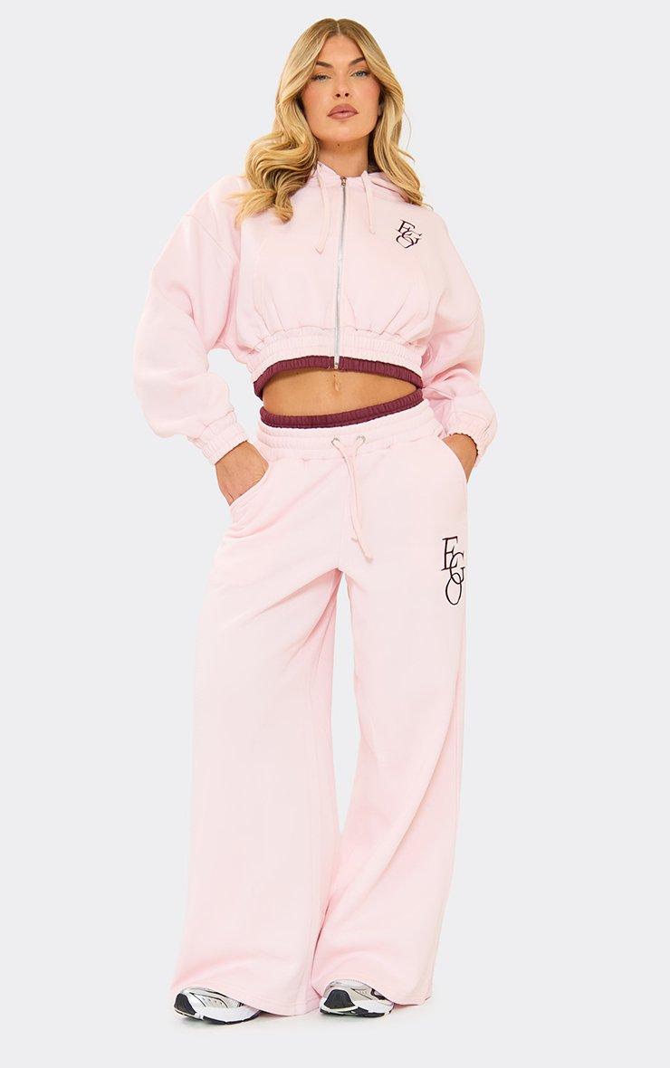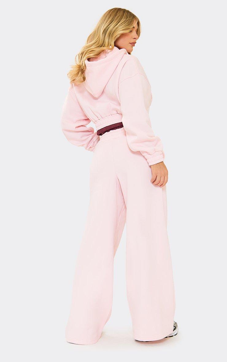 Tie Contrast Waistband Wide Leg Joggers In Pink