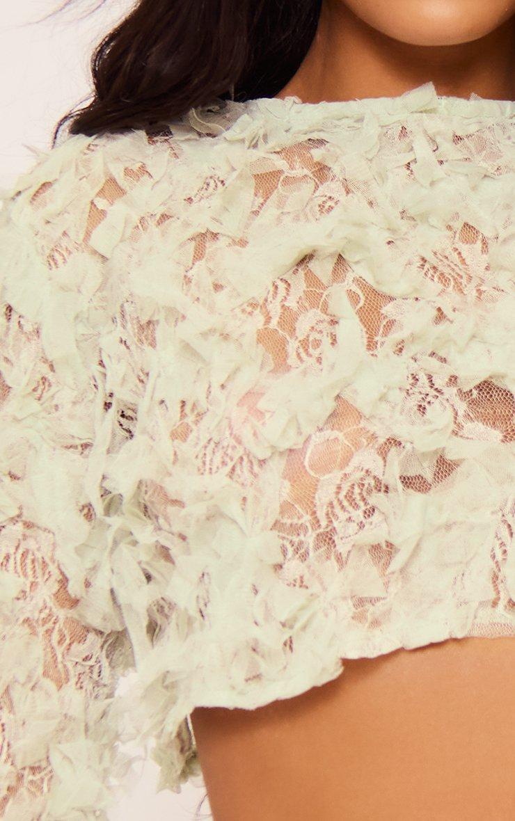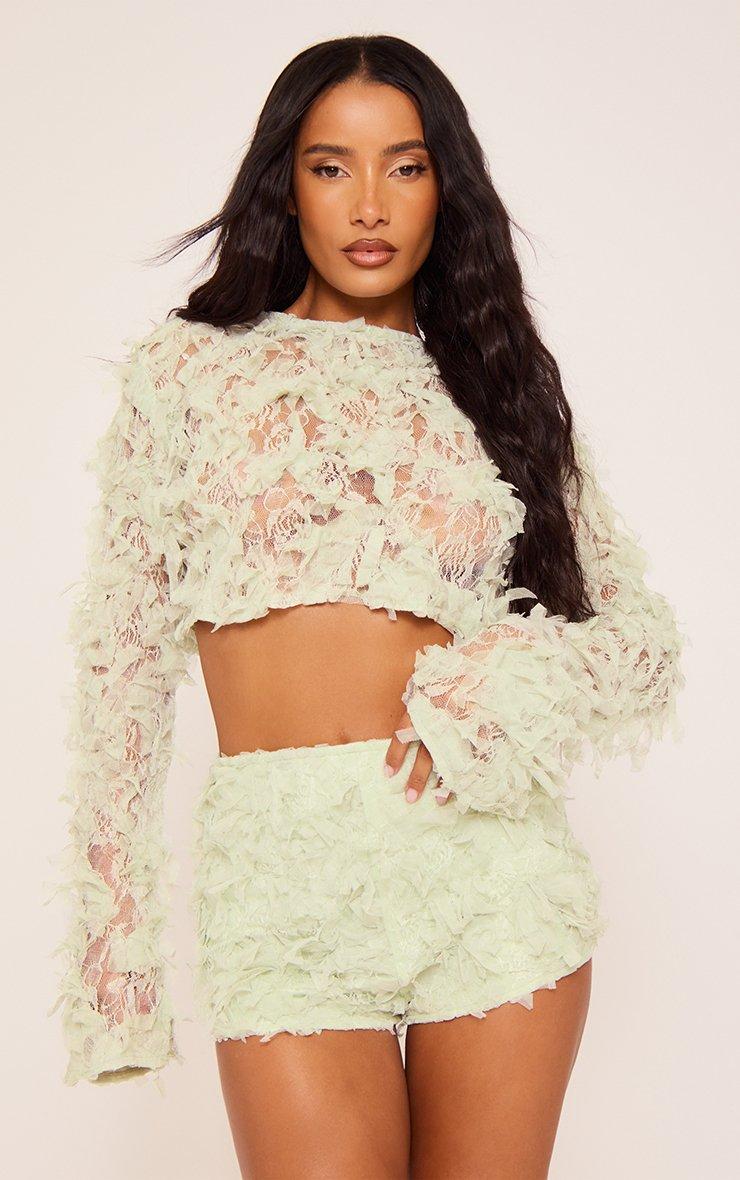 Long Sleeve Boxy Crop Top In Sage Green Texture