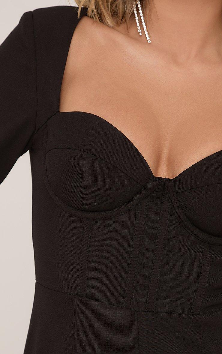 long sleeve structured corset detail playsuit in black