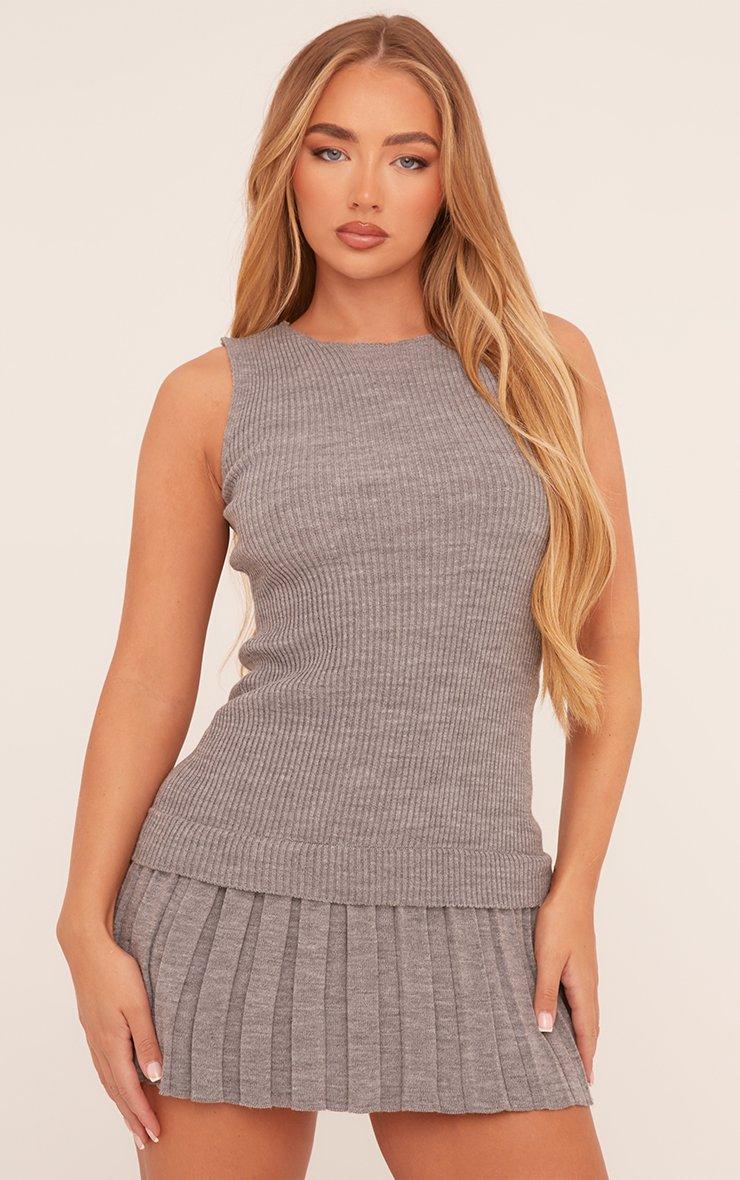 Sleeveless Drop Waist Pleated Hem Micro Mini Dress In Grey
