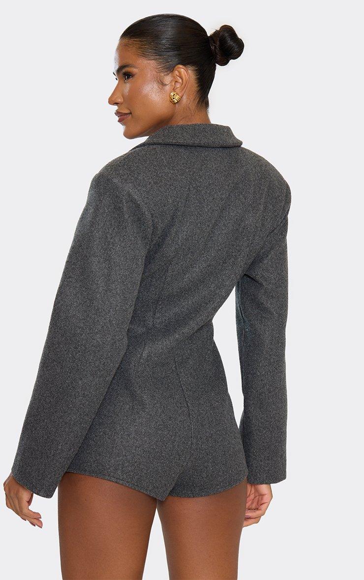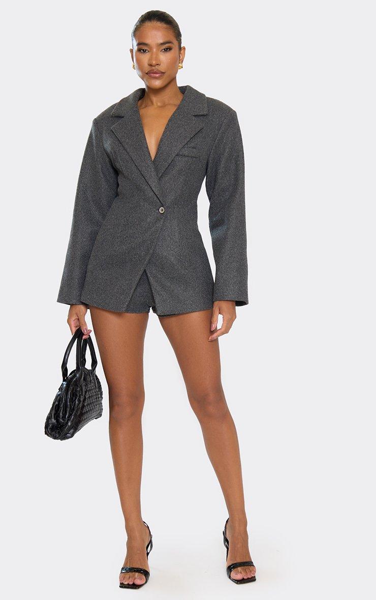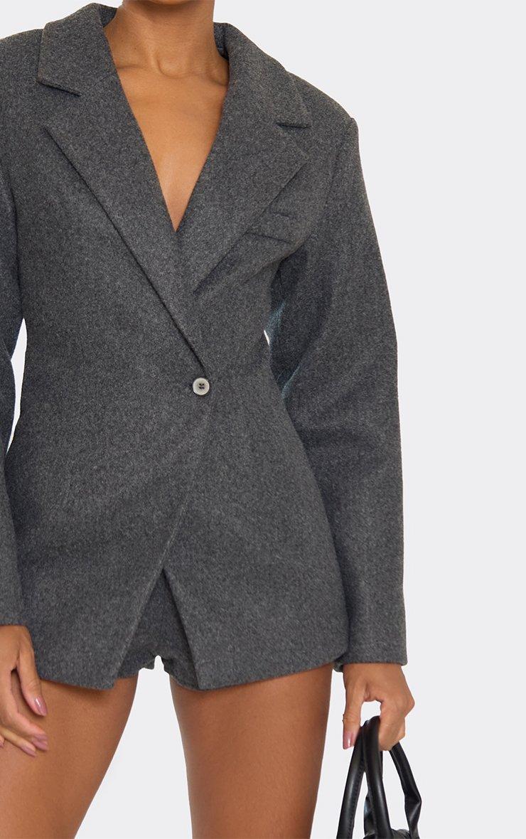 Cinched Waist Detail Wool Look Blazer Dress In Charcoal Grey