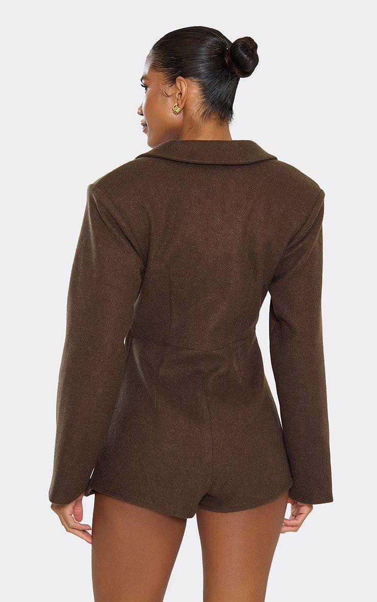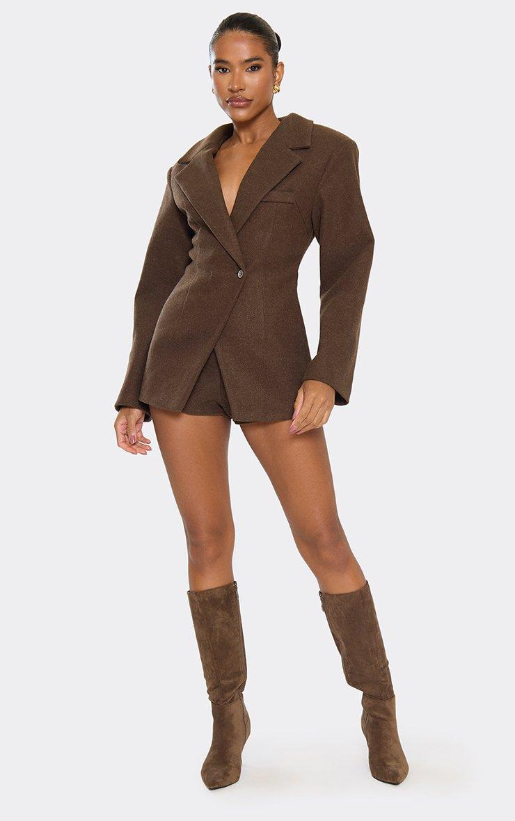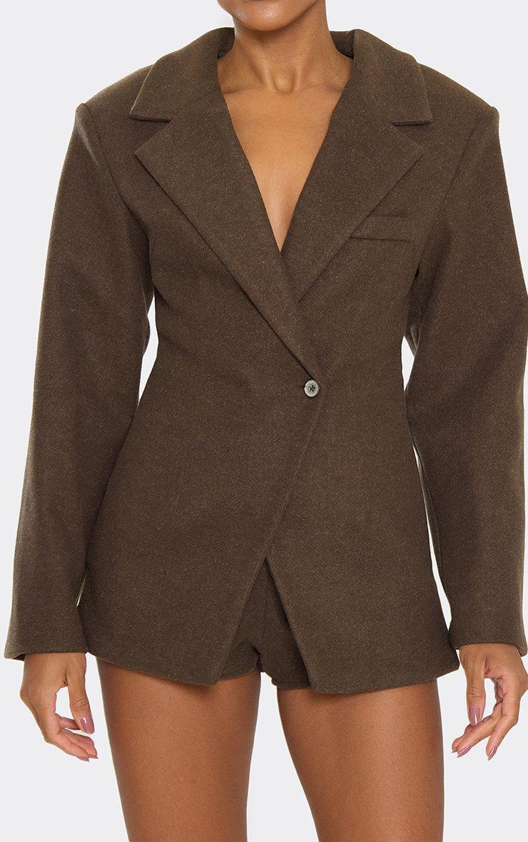 Cinched Waist Wool Look Blazer Dress In Taupe Brown