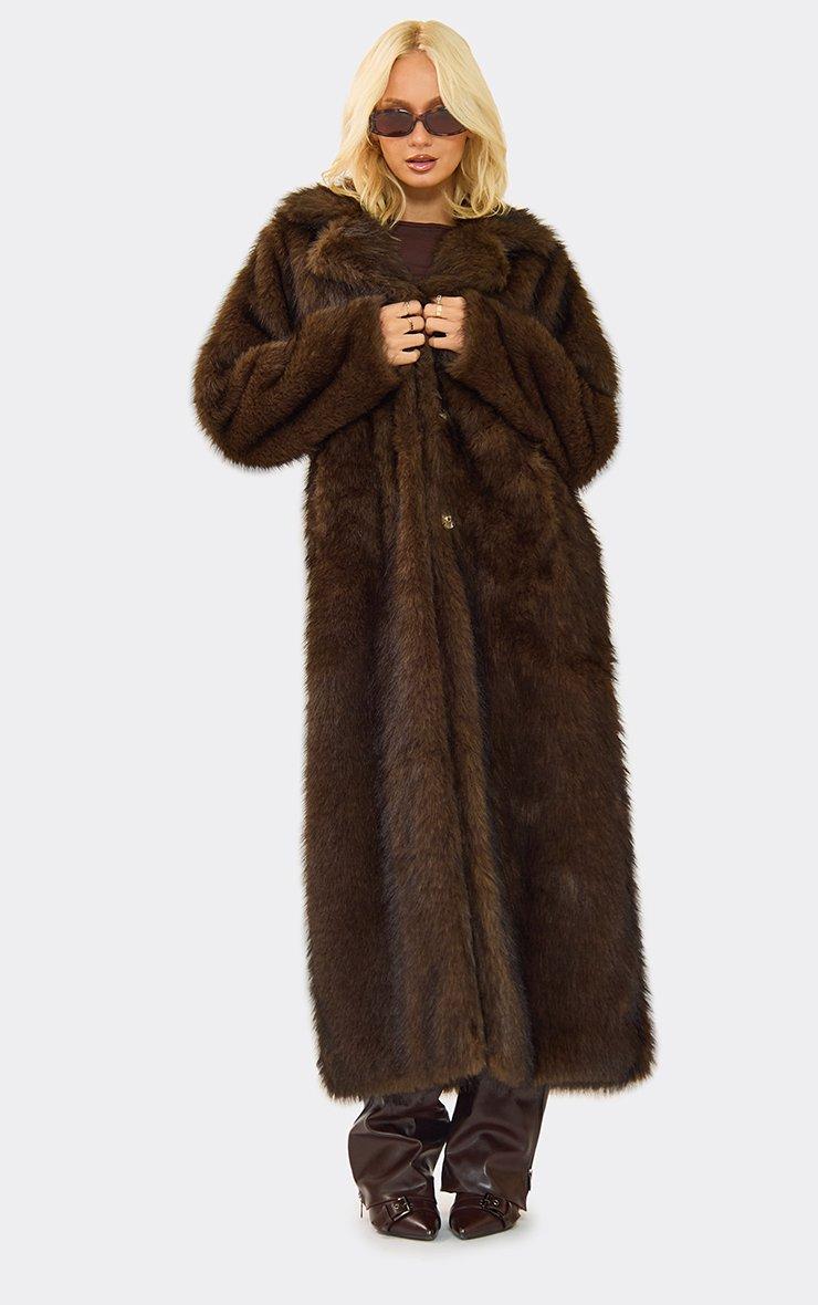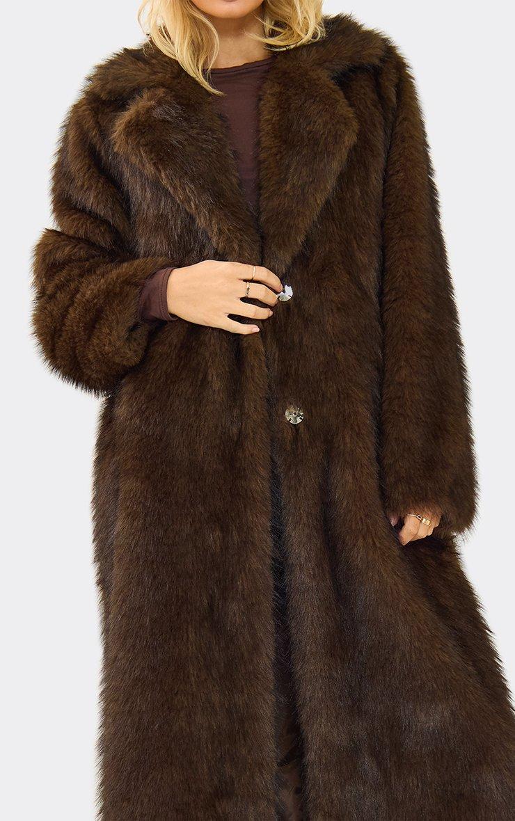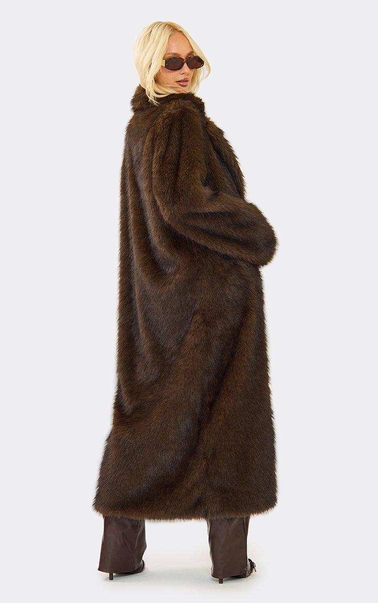 Oversized Maxi Coat In Chocolate Brown Look Faux Fur