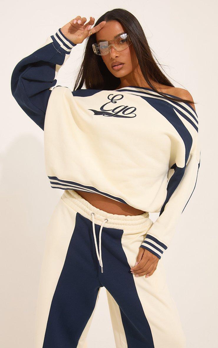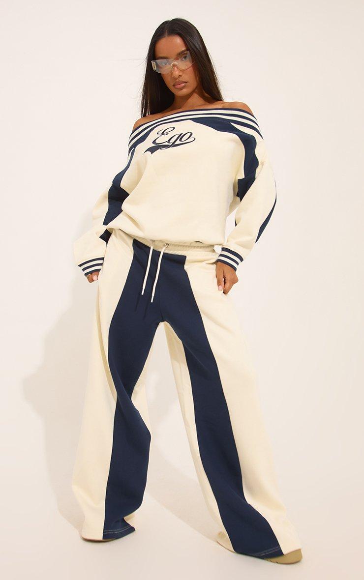 Oversized Mid Rise Contrast Stripe Wide Leg Joggers In Grey