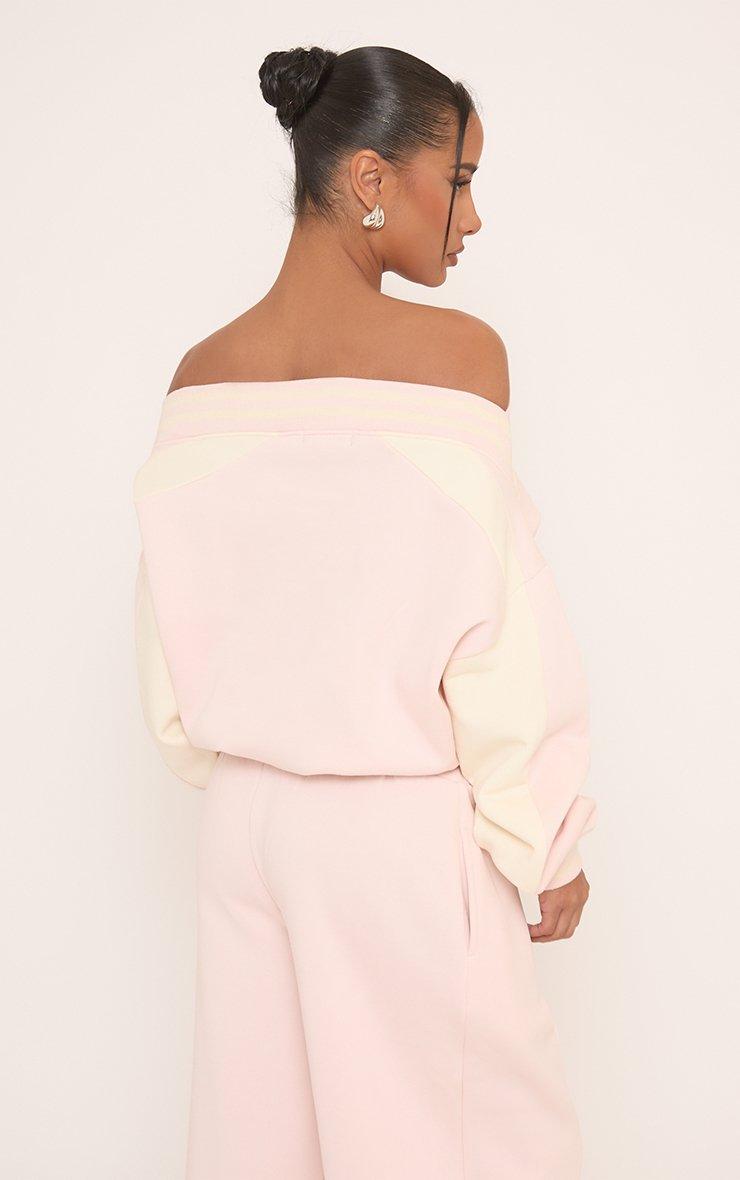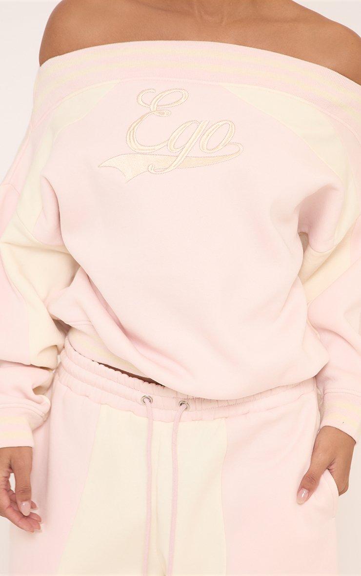 Oversized Bardot Contrast Stripe Ego Graphic Sweater In Pink