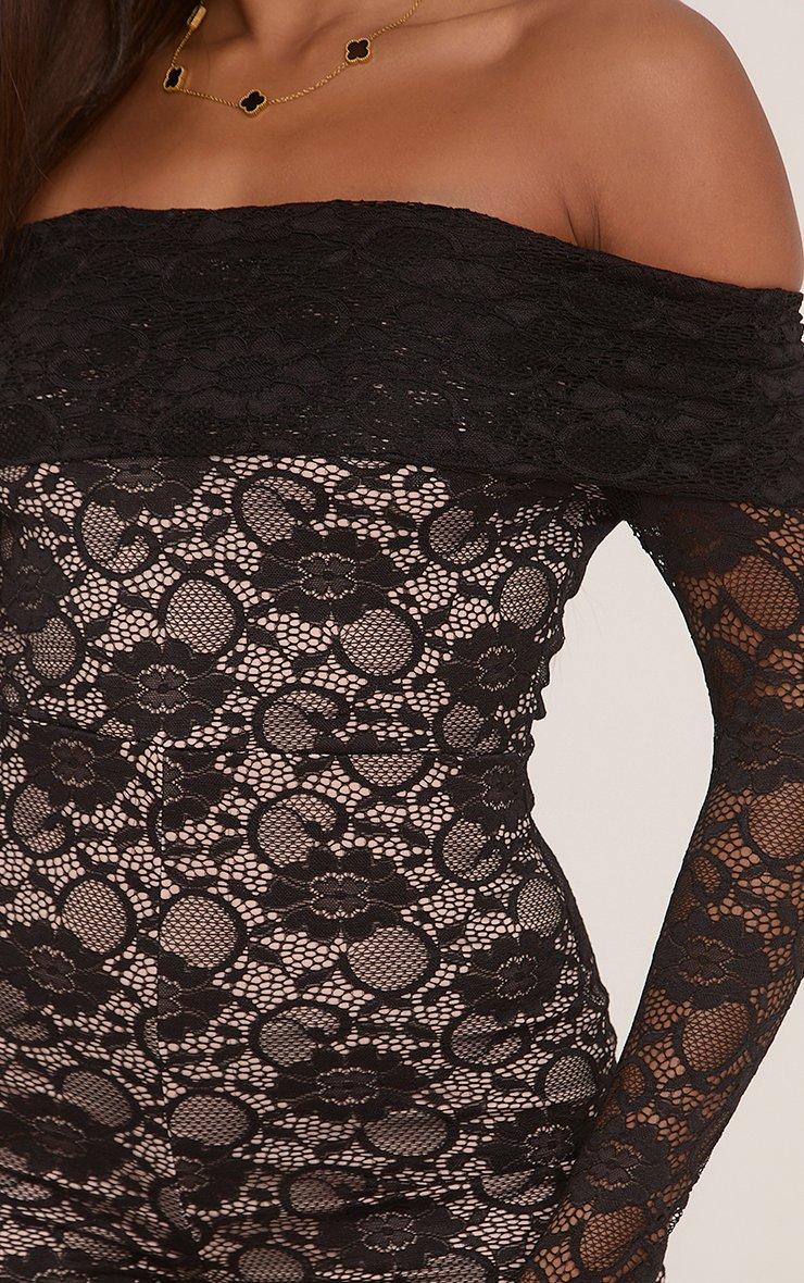 Fold Over Detail Bardot Playsuit In Black Lace