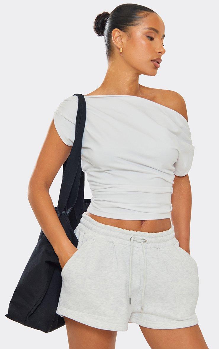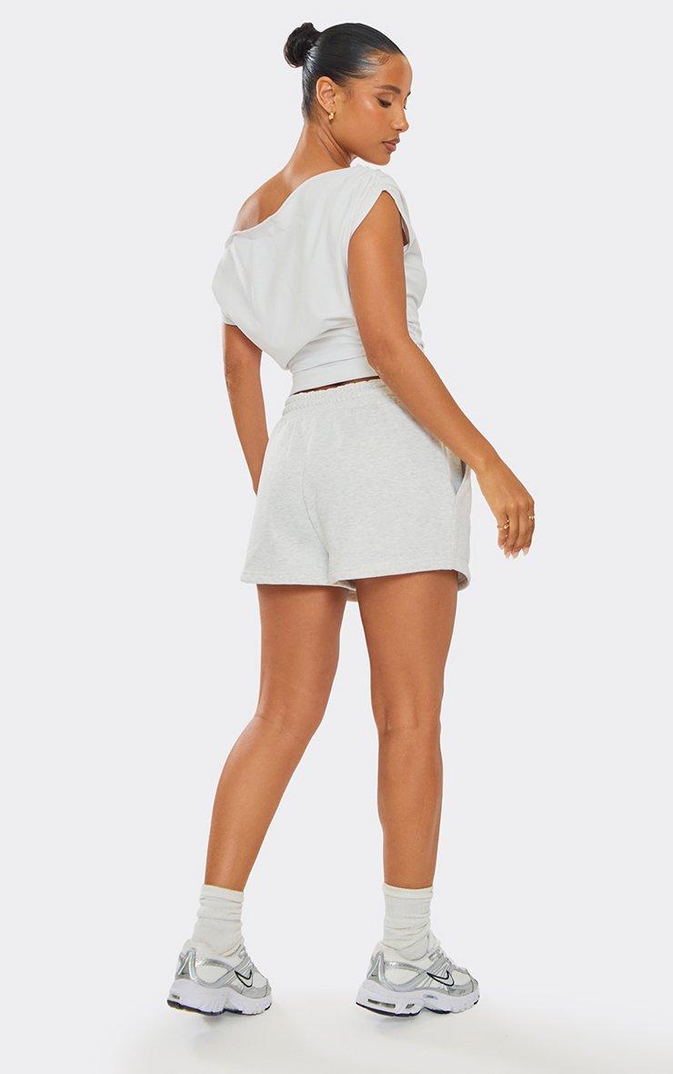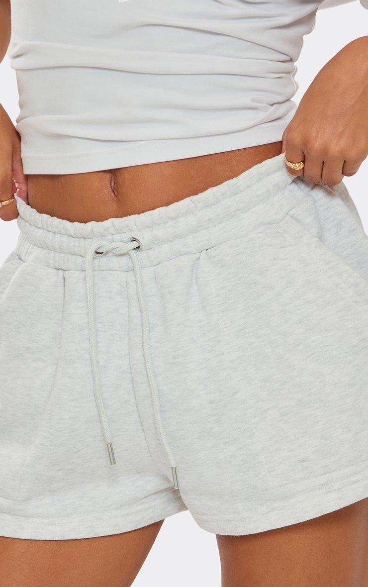 Mid Rise Drawstring Waist Detail Mini Sweat Shorts In Grey