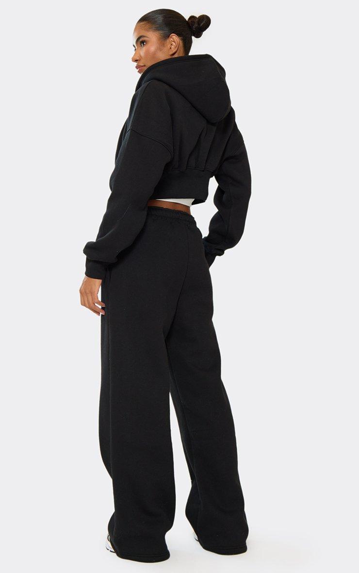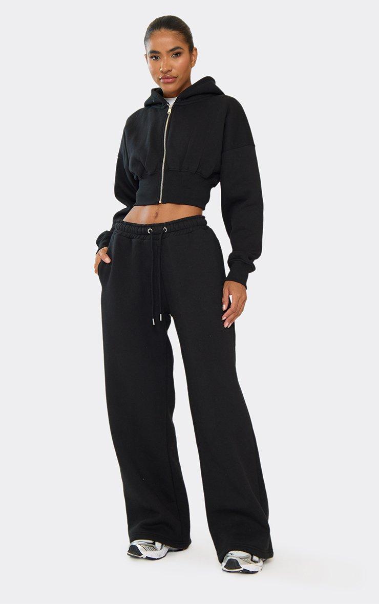 Elasticated Waist Wide Leg Joggers In Black