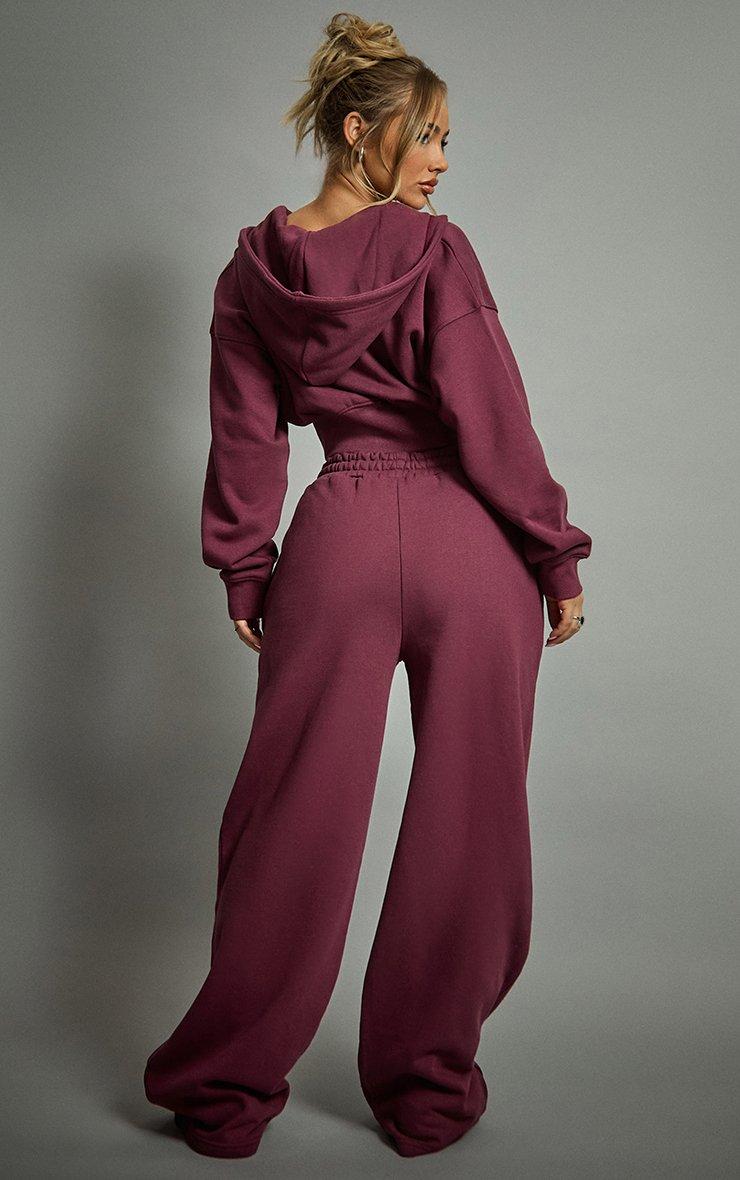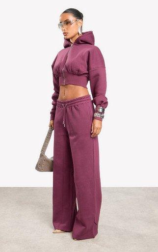 Mid Rise Wide Leg Joggers In Plum