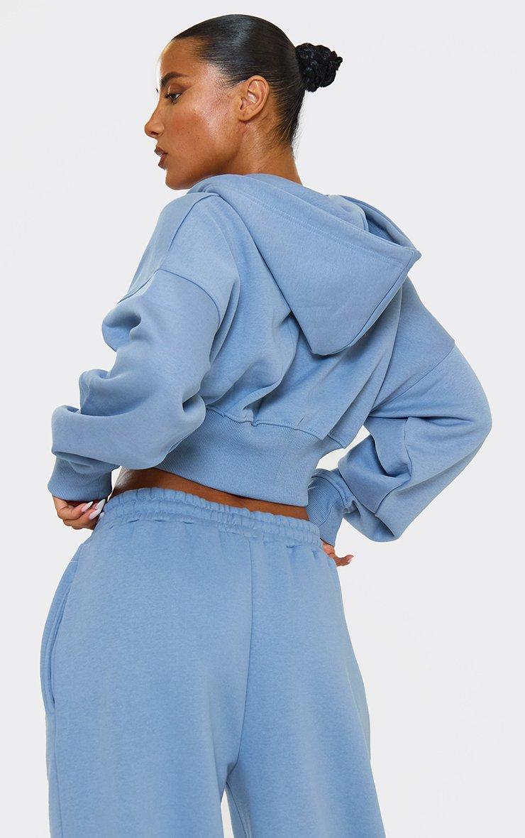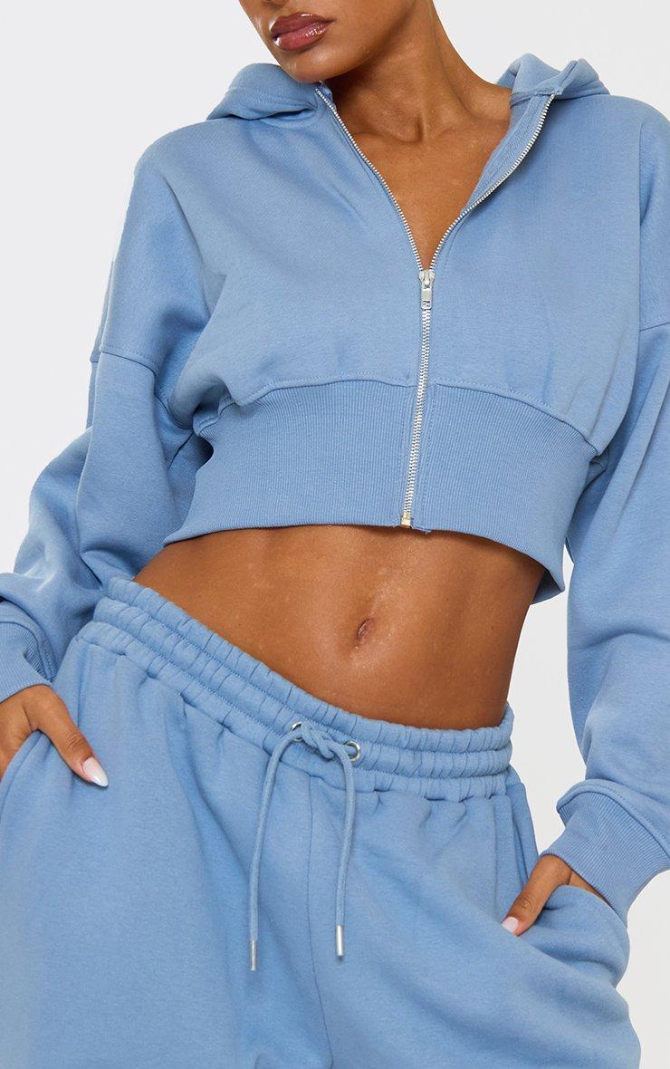 Long Sleeve Graphic Detail Zip Up Cropped Hoodie In Dark Navy
