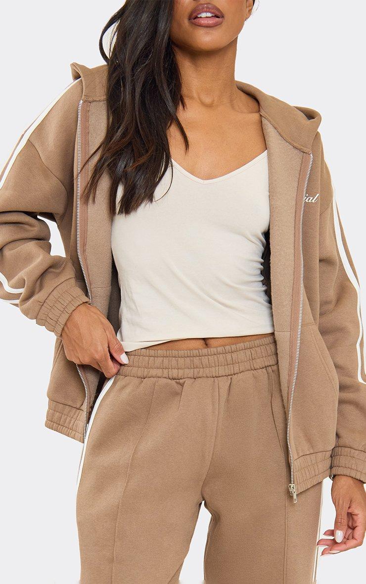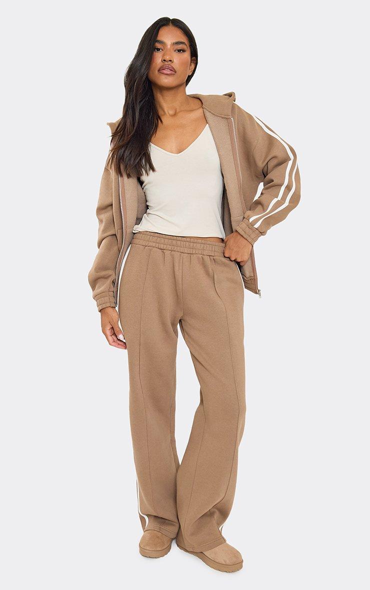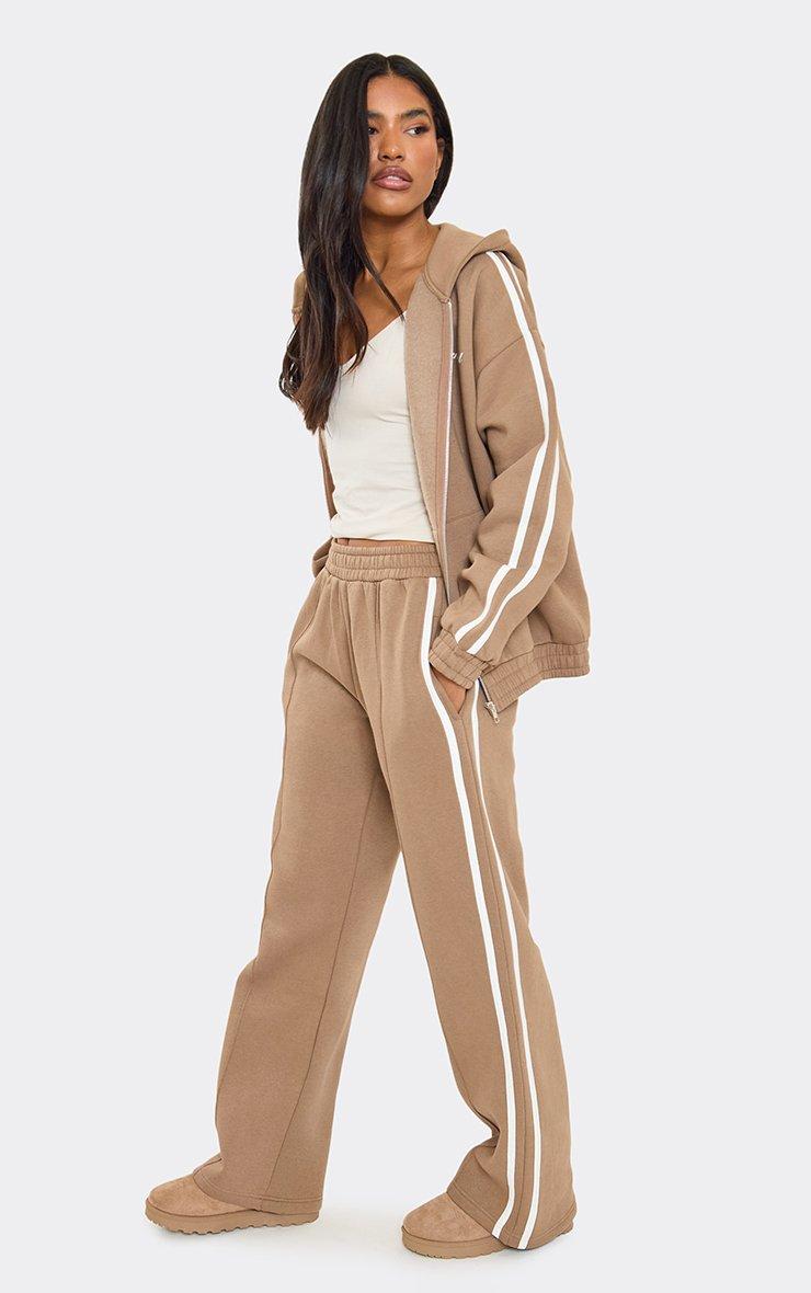 Oversized Mid Rise Contrast Stripe Straight Leg Joggers In Mocha Brown