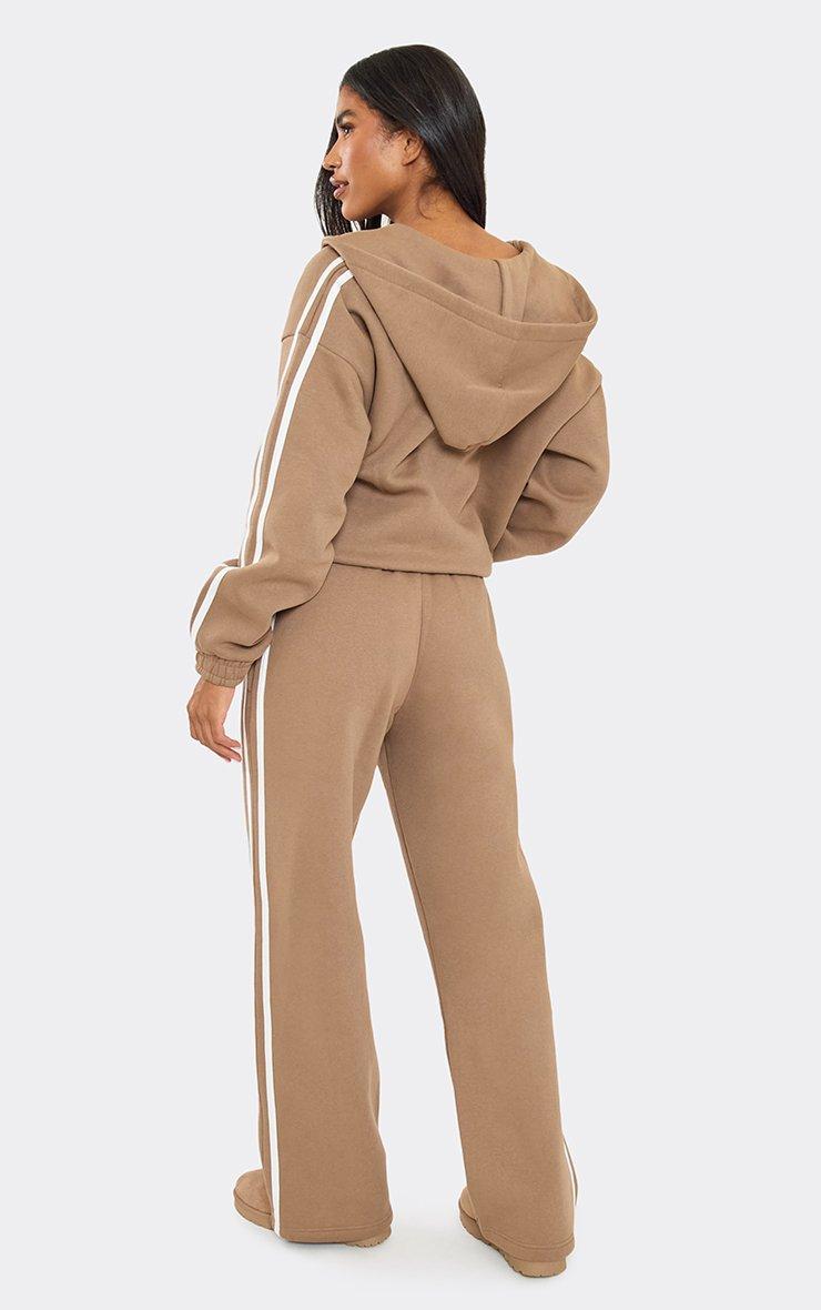 Mid Rise Contrast Stripe Detail Wide Leg Joggers In Chocolate Brown
