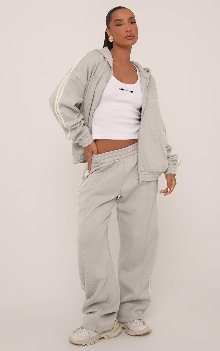 Oversized Mid Rise Contrast Stripe Wide Leg Joggers In Grey