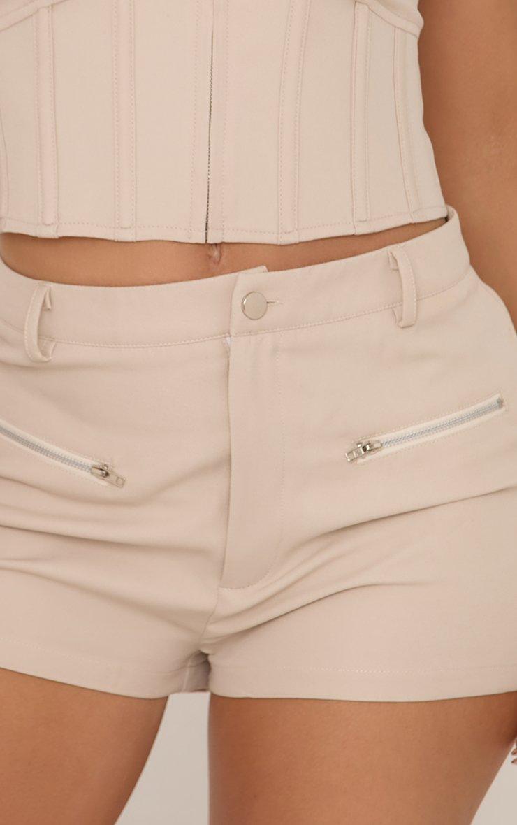 Mid Waist Zip Front Cargo Shorts In Taupe Woven
