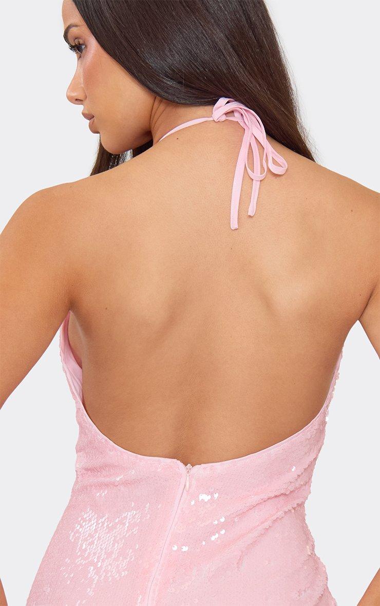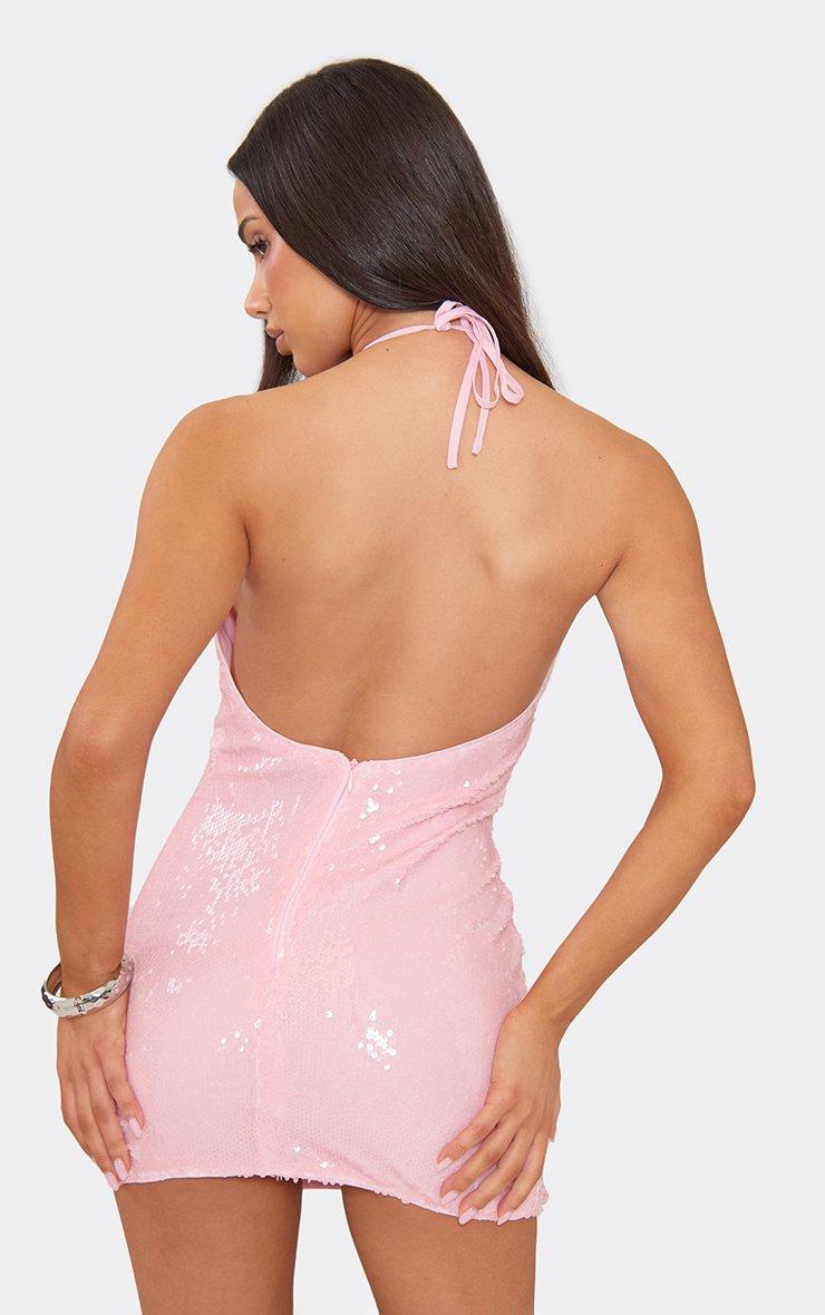 plunge neck mini bodycon dress in baby pink sequin