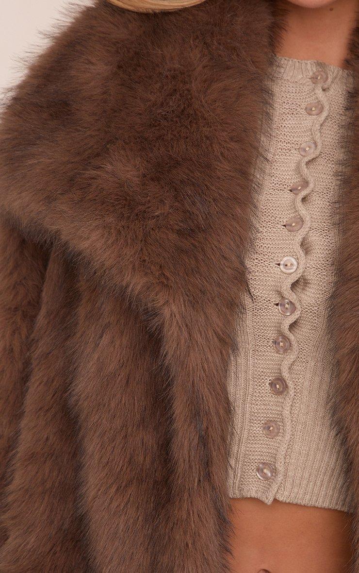 oversized collar detail jacket in chocolate brown faux fur