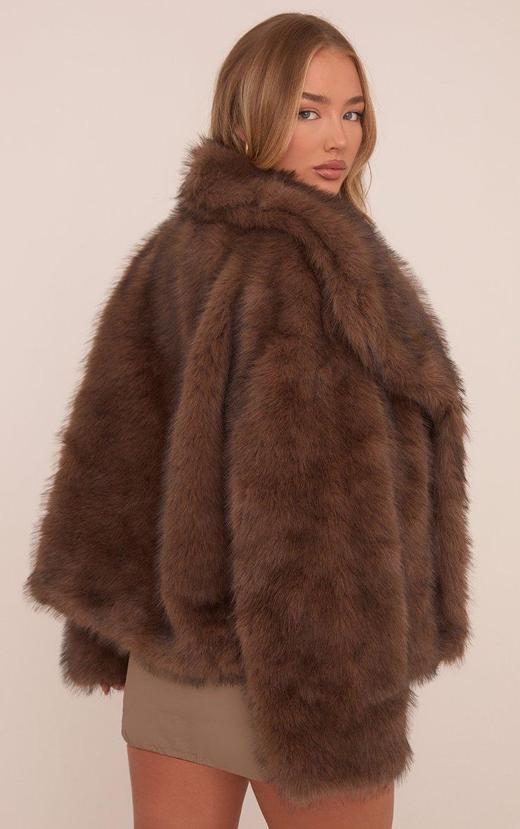 Oversized Collar Jacket In Chocolate Brown Faux Fur