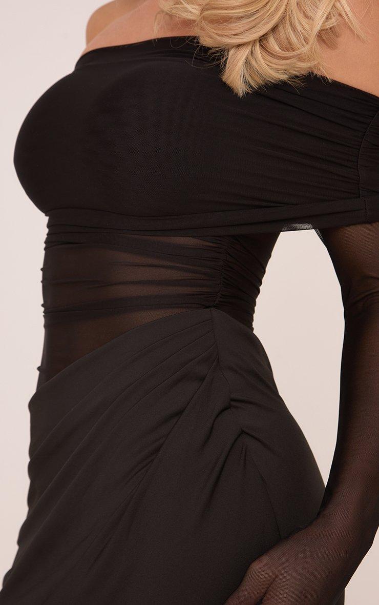 Bardot Mesh Panel Drape Waist Maxi Dress In Black