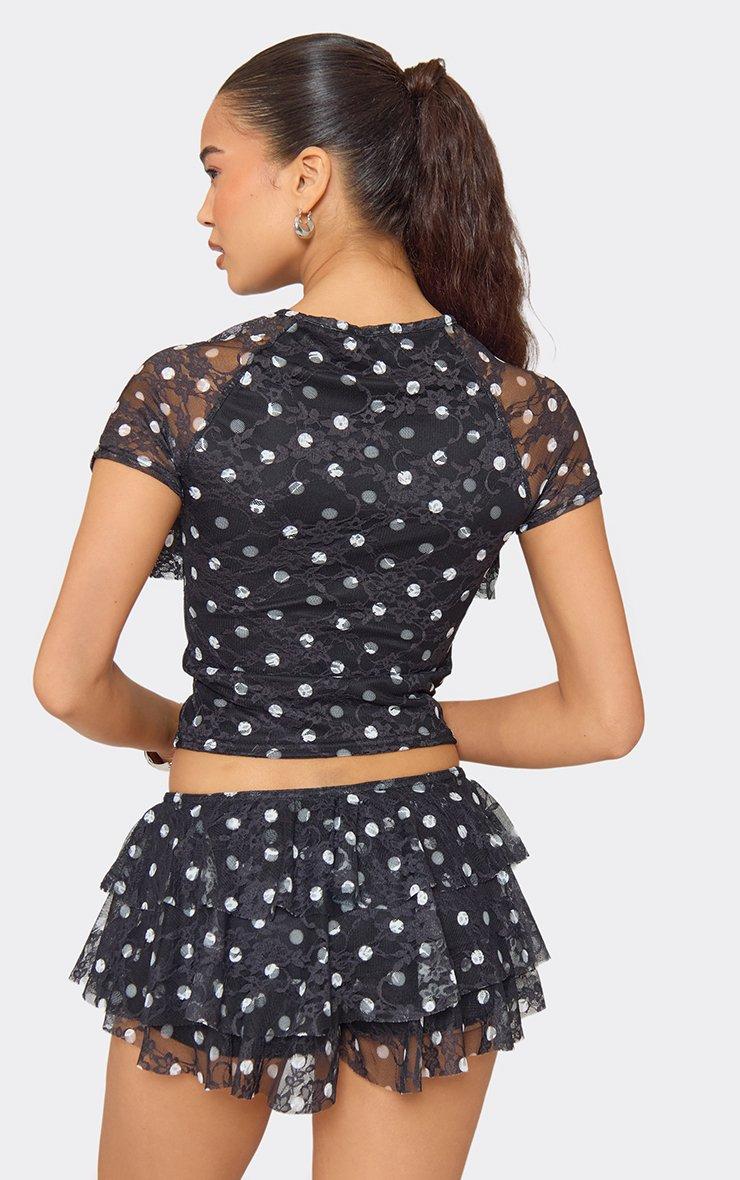 Mid Rise Frill Bloomer Shorts In Black Polka Dot Lace