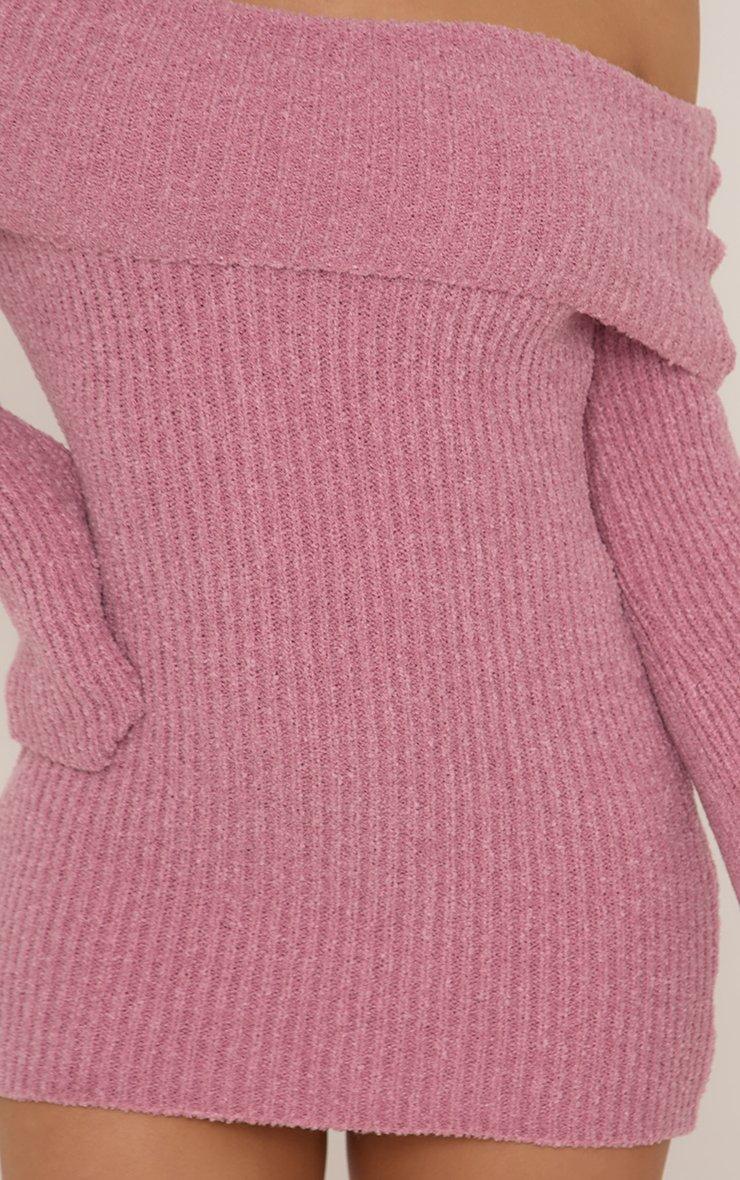 Roll Neck Draped Long Sleeve Mini Dress In Chocolate Brown Knit
