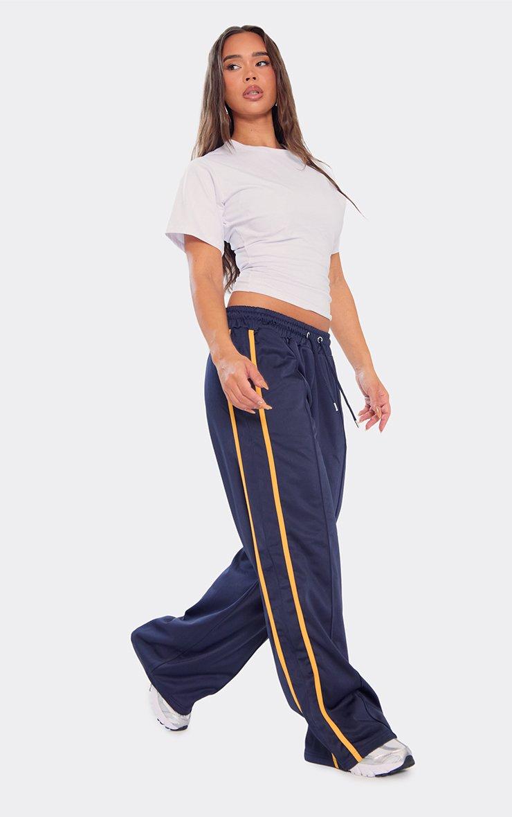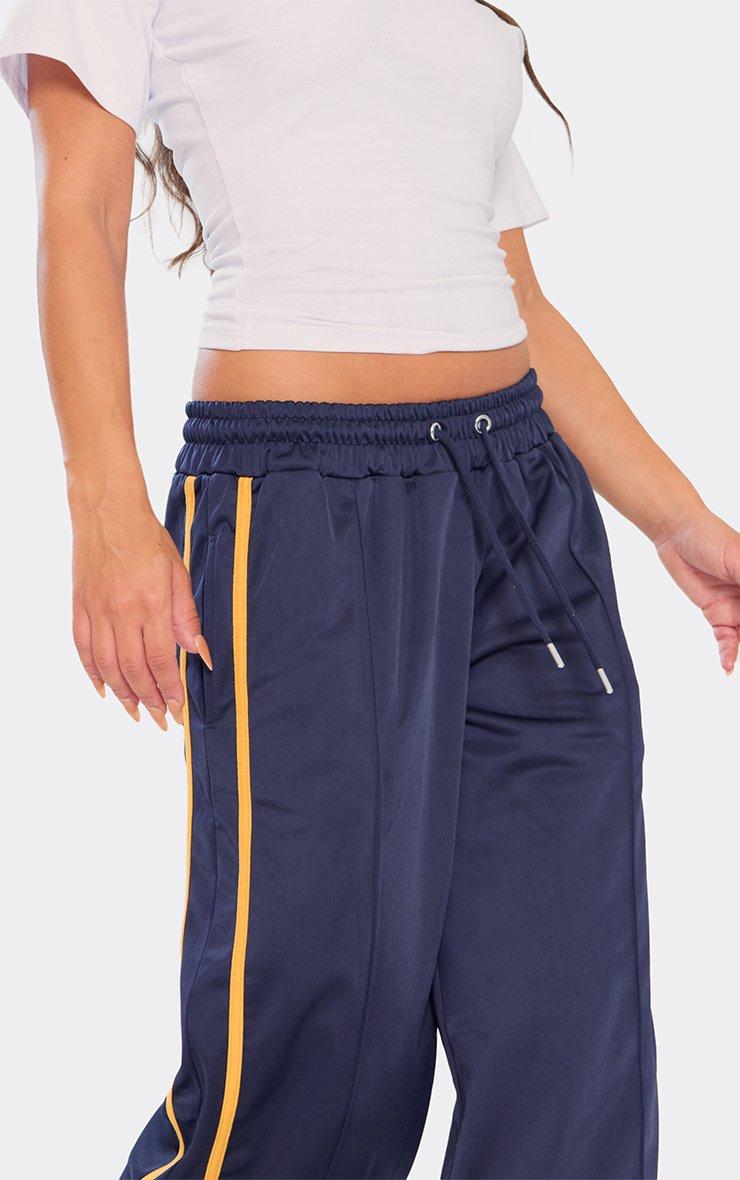 Tie Waist Contrast Side Stripe Track Pants In Navy Blue