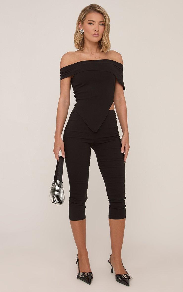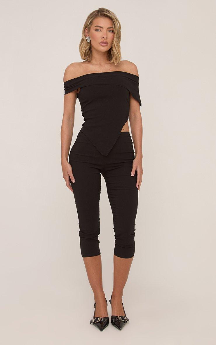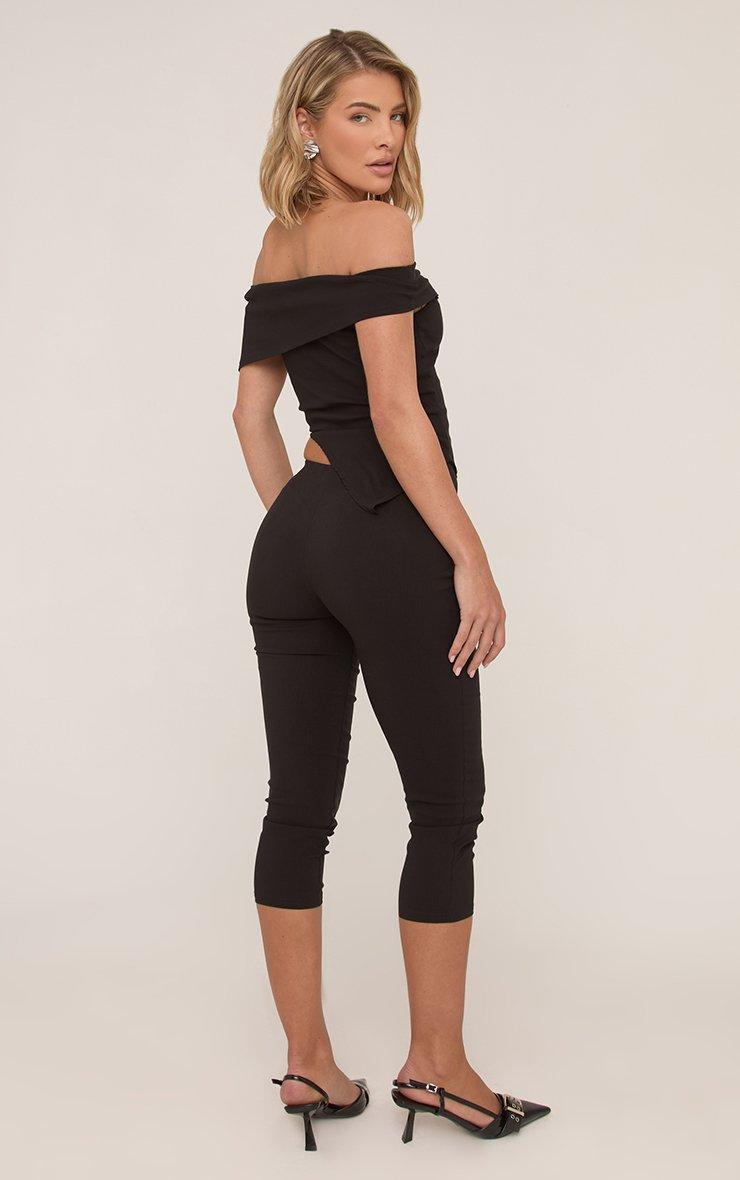 Mid Rise Split Hem Capri Leggings In Black Floral Lace