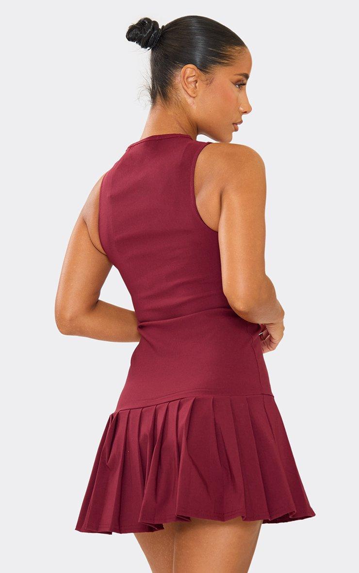 Plunge Halterneck Tailored Mini Dress In Burgundy