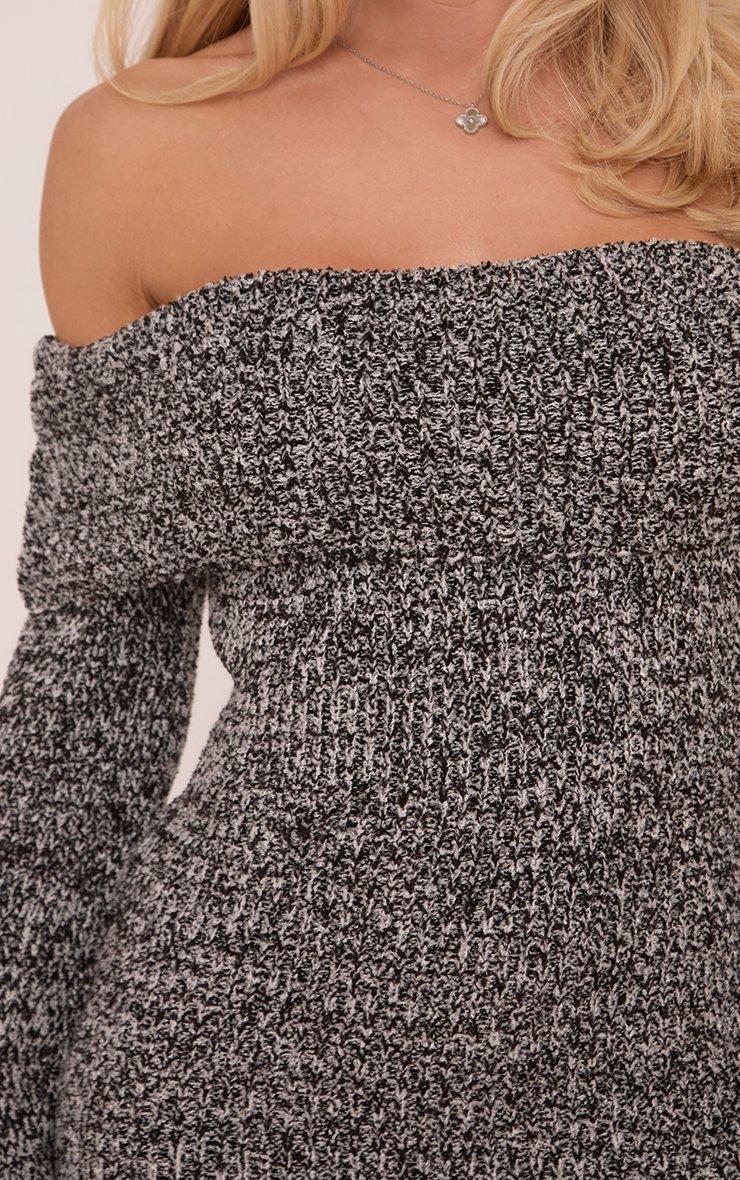 Long Flared Sleeve Drape Detail Mini Bodycon Dress In Grey Knit