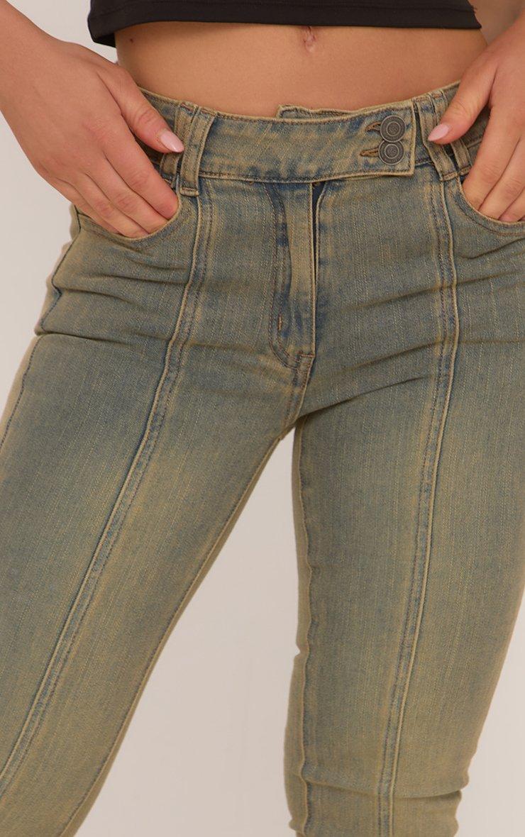 Low Rise Button Up Seam Detail Capri Jeans In Indigo Blue Denim