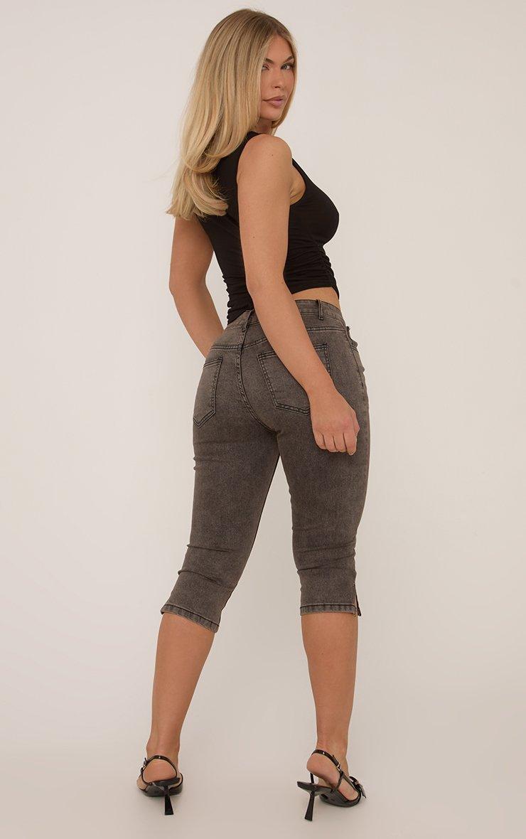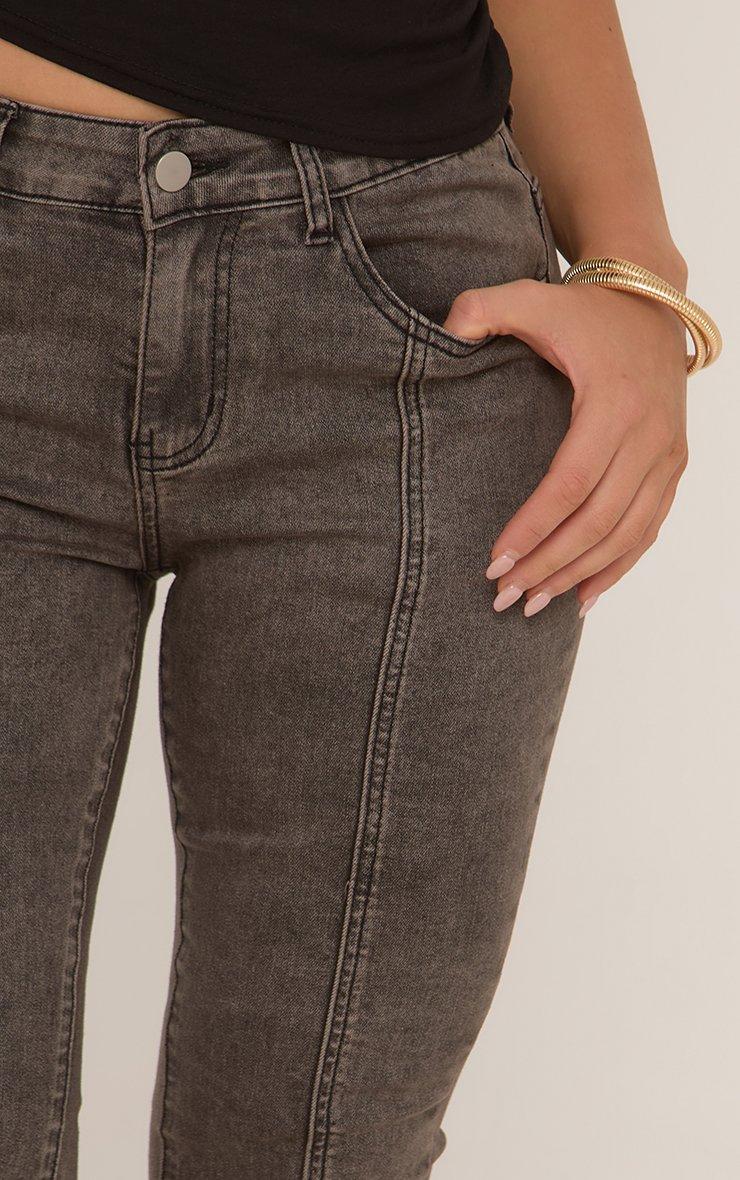 Dipped Waist Ruched Front Flared Jeans In Black Washed Denim