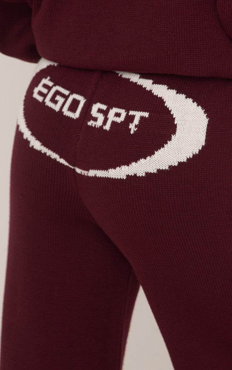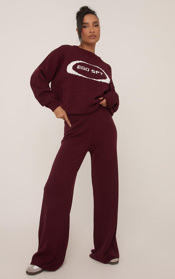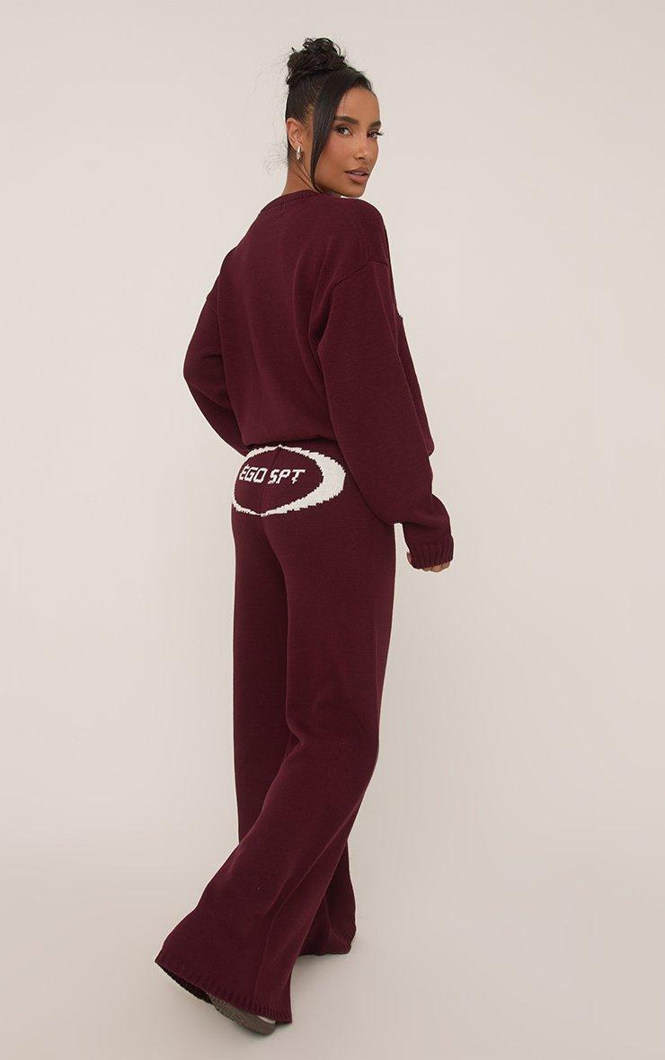 Mid Waist Ego Graphic Straight Leg Trousers In Burgundy Knit