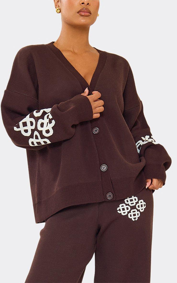 Button Through Contrast Swirl Cardigan In Chocolate Brown Knit