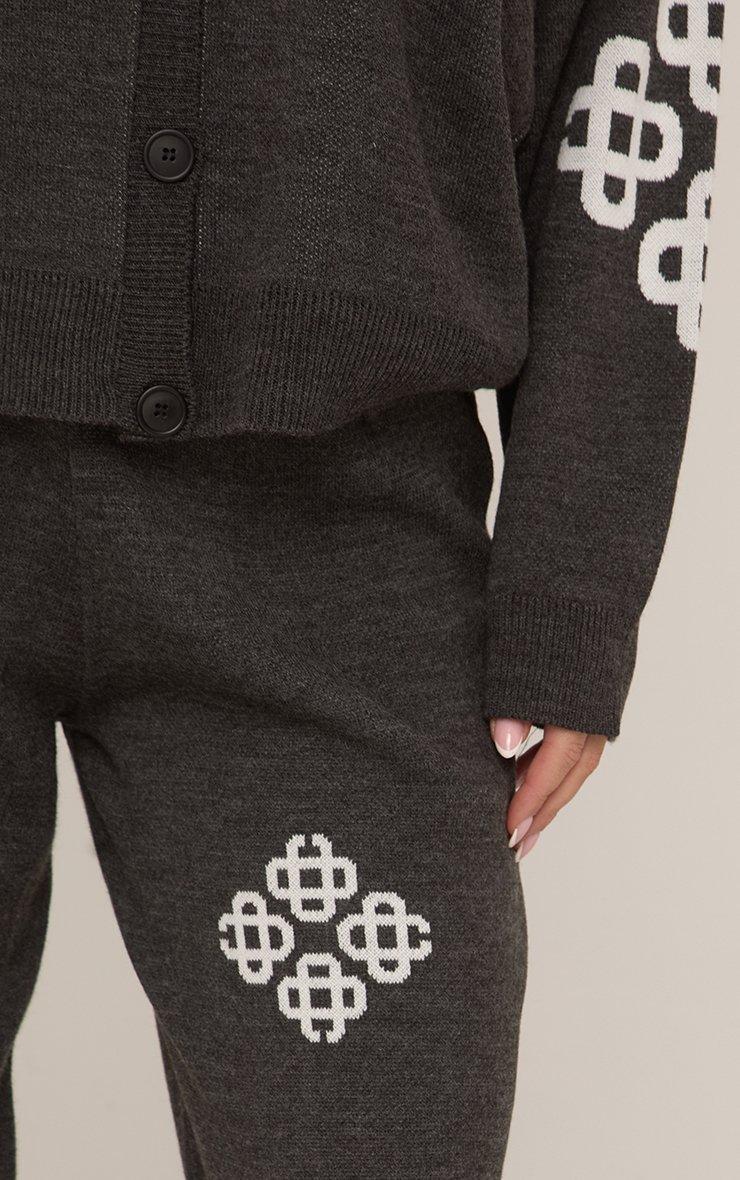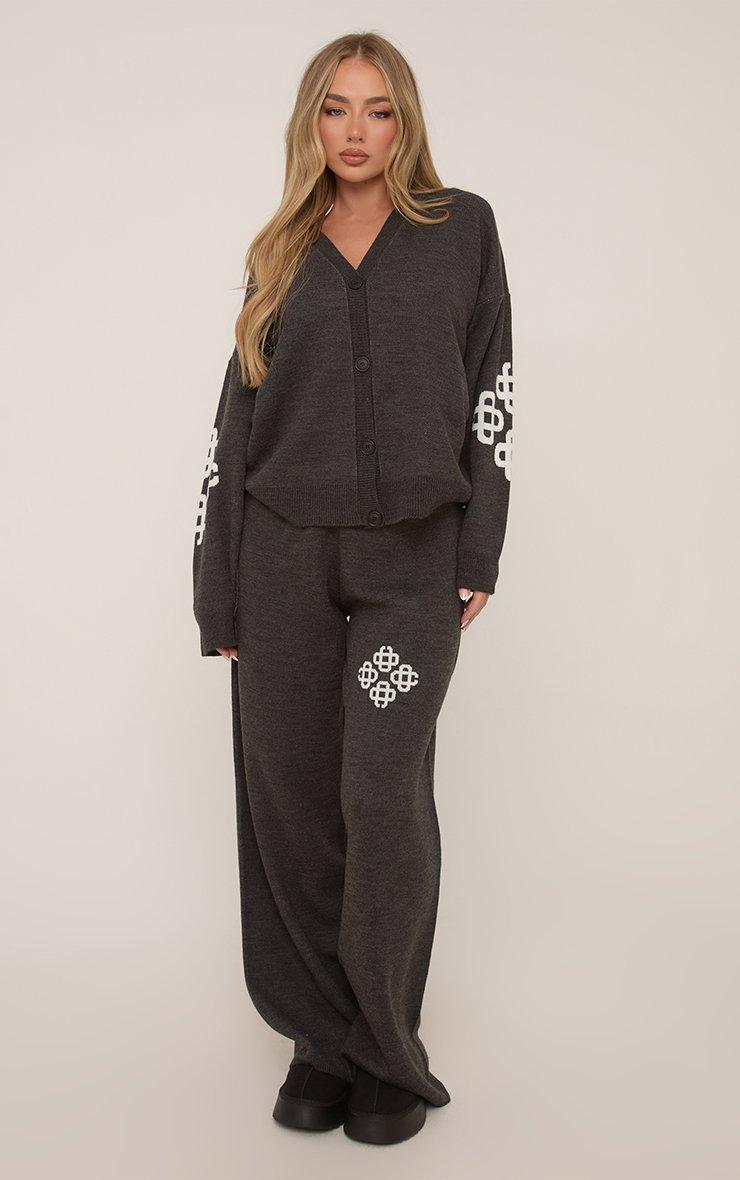 Mid Waist Ego Graphic Straight Leg Trousers In Grey Knit