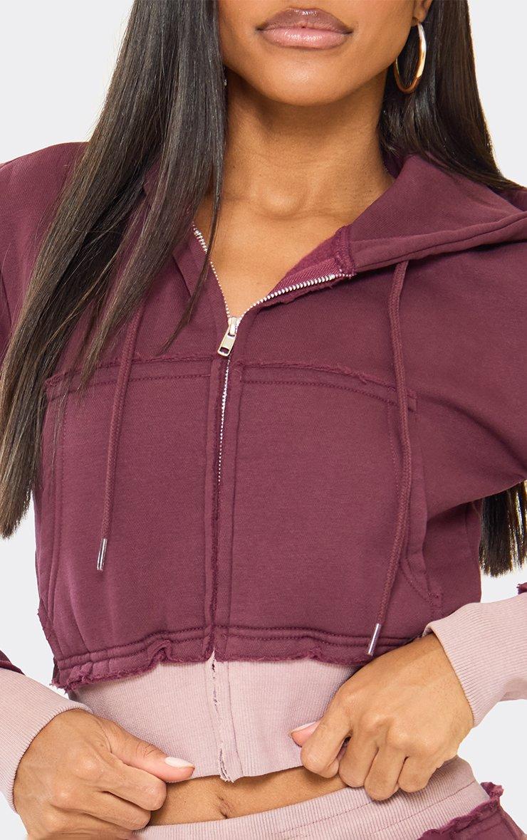 Zip Through Detail Cropped Hoodie In Dark Plum