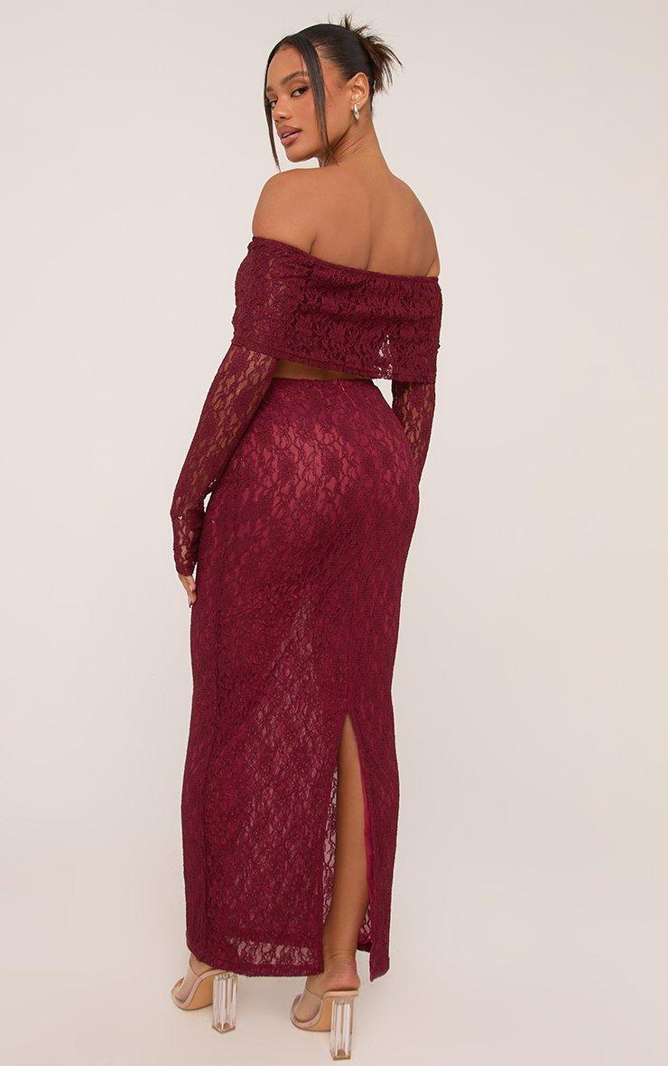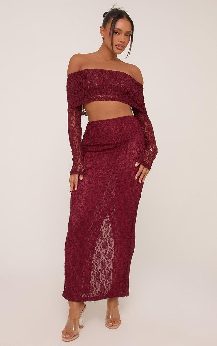 High Waist Cut Out Heart Detail Ruched Maxi Skirt In Burgundy Slinky