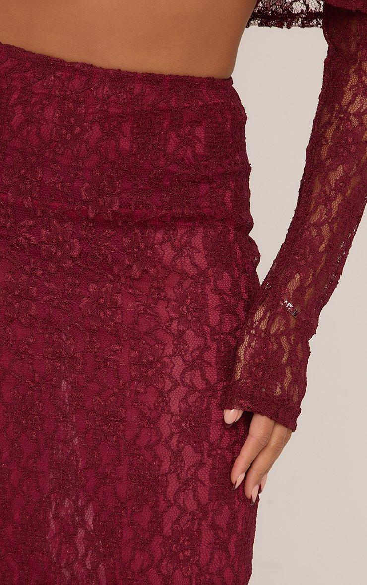 Mid Rise Frill Detail Mini Skirt In Red Lace