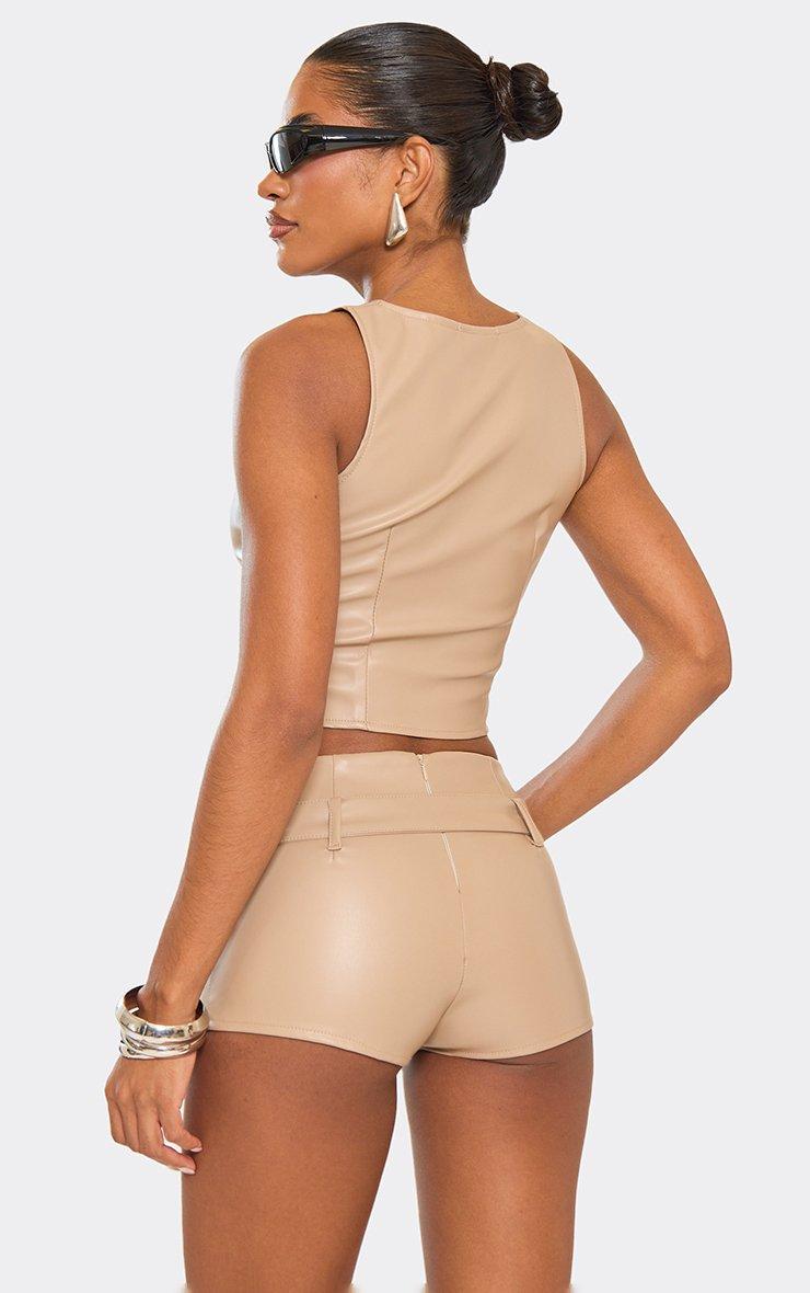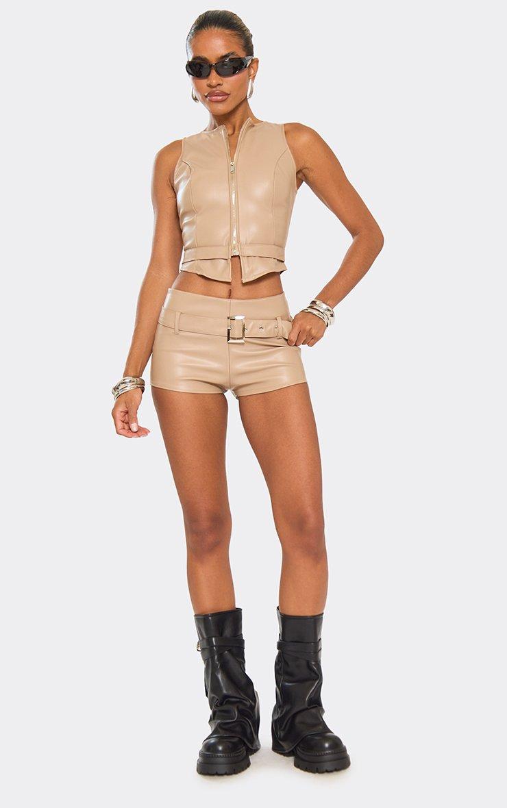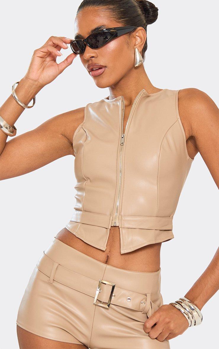 Sleeveless Zip Front Top In Brown Faux Leather