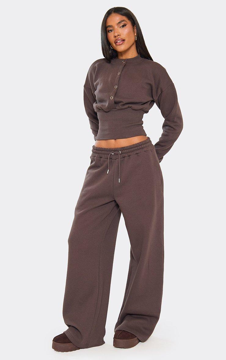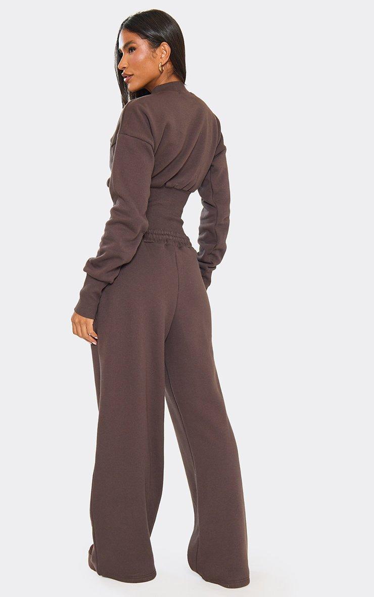 Fold Over Waist Wide Leg Joggers In Chocolate
