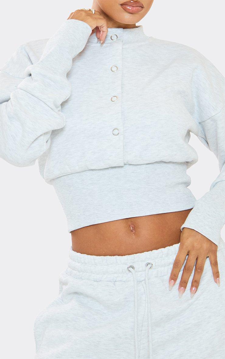 long sleeve popper detail cinched waist sweatshirt in light grey marl