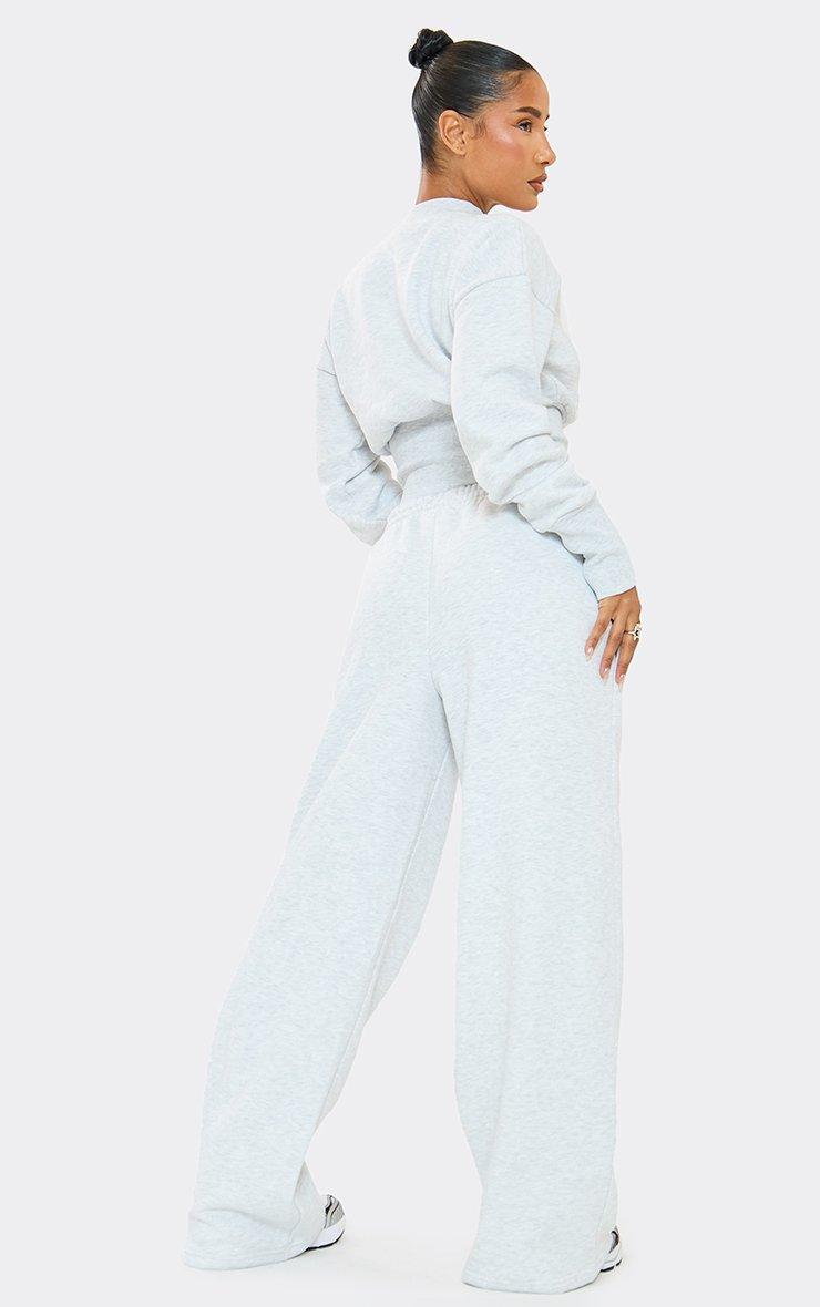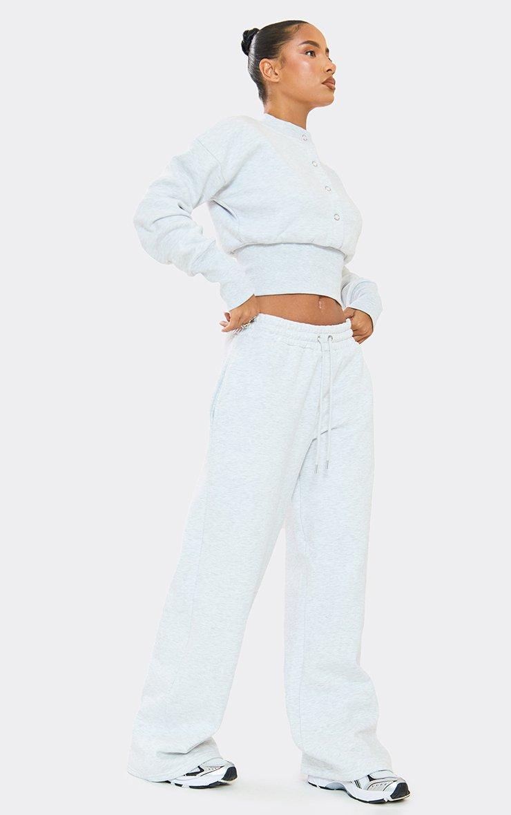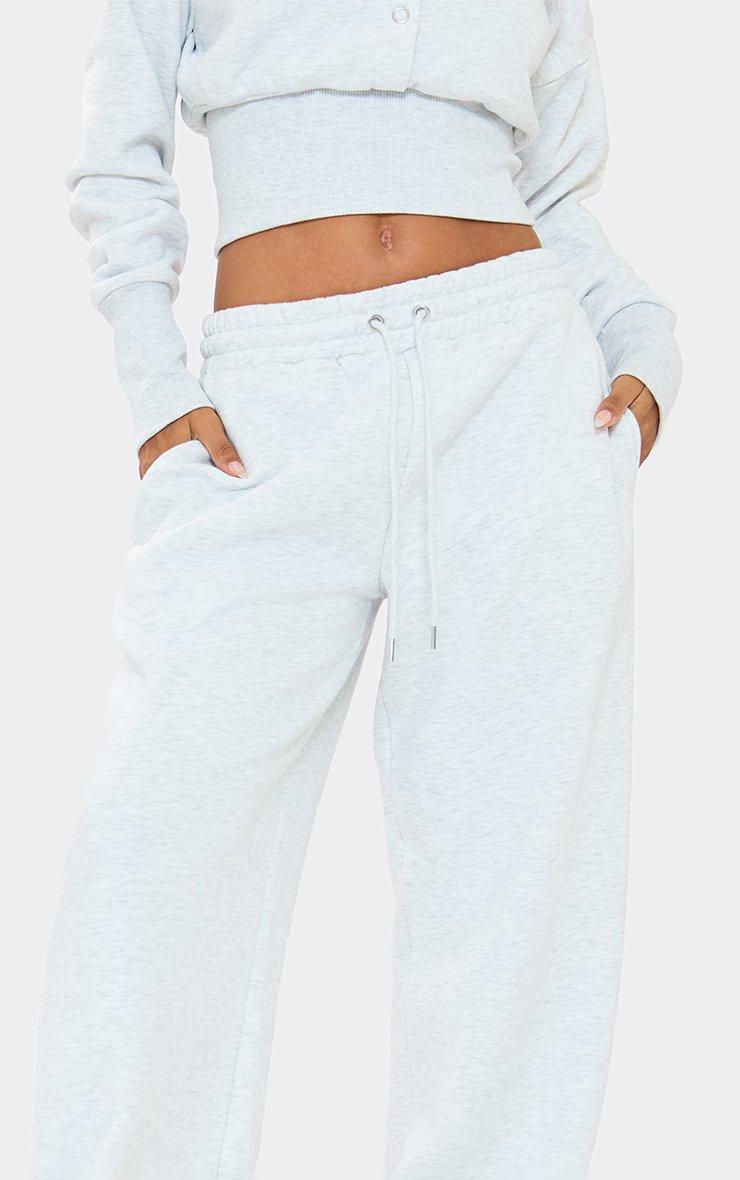 Low Waist Wide Leg Joggers In Light Grey Marl