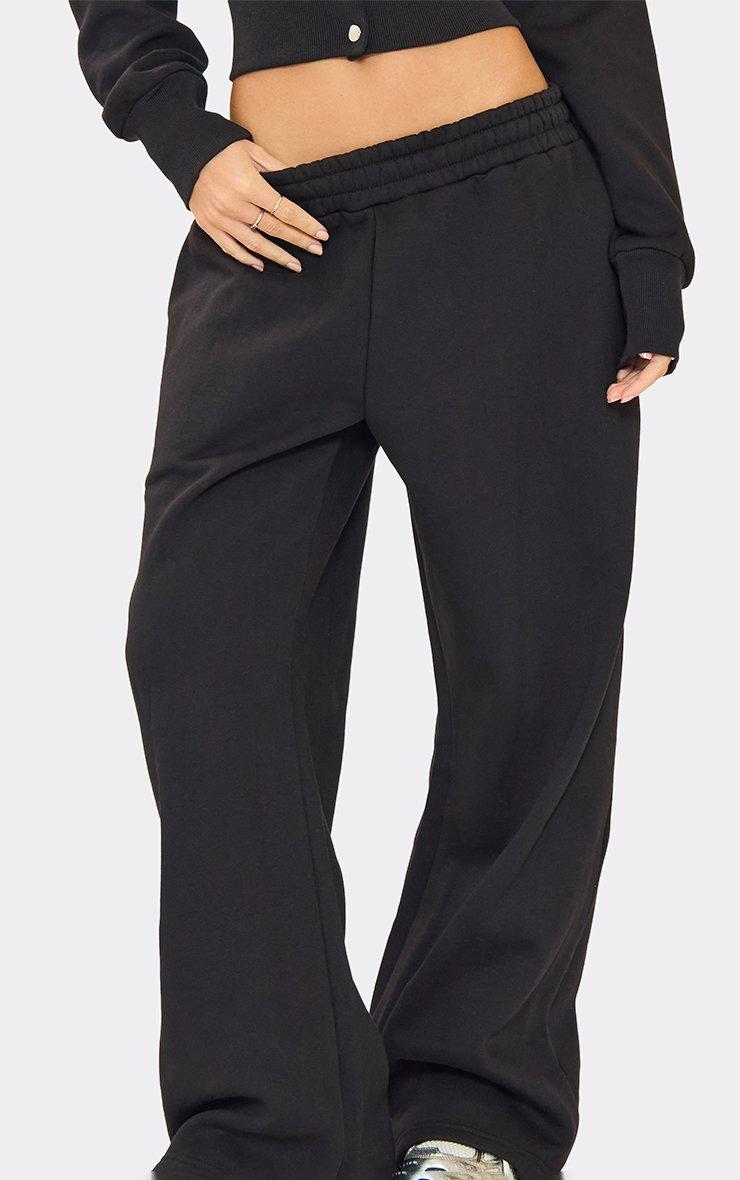 High Waist Ego Graphic Slogan Flared Leg Joggers In Black