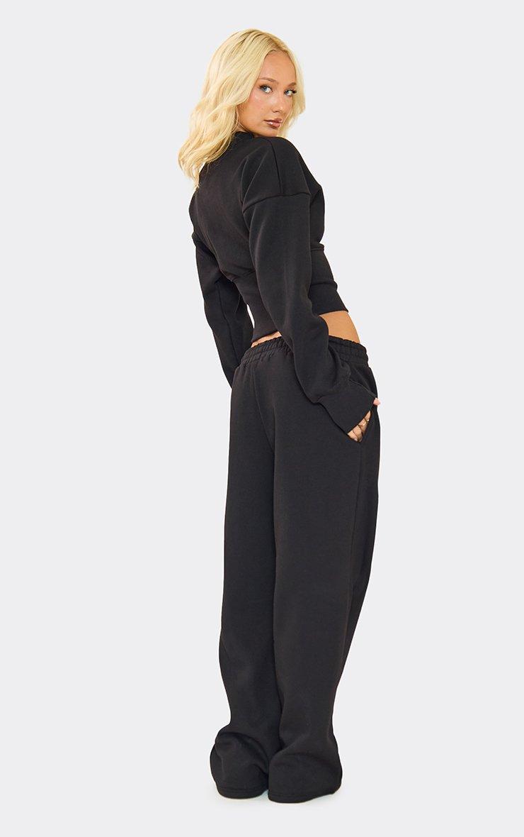 Tie Waist Graphic Detail Wide Leg Joggers In Black